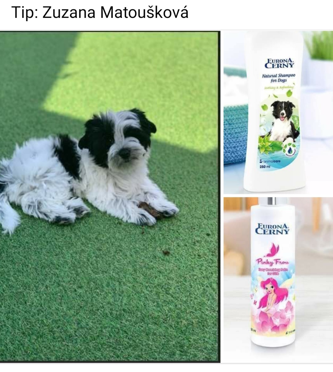 Na velmi silné nečistoty, bláto, zadeček a proti parazitům doporučuje naše Ája, Allie Diamond Sky of Dreams i šťěňátka od 1 měsíce věku