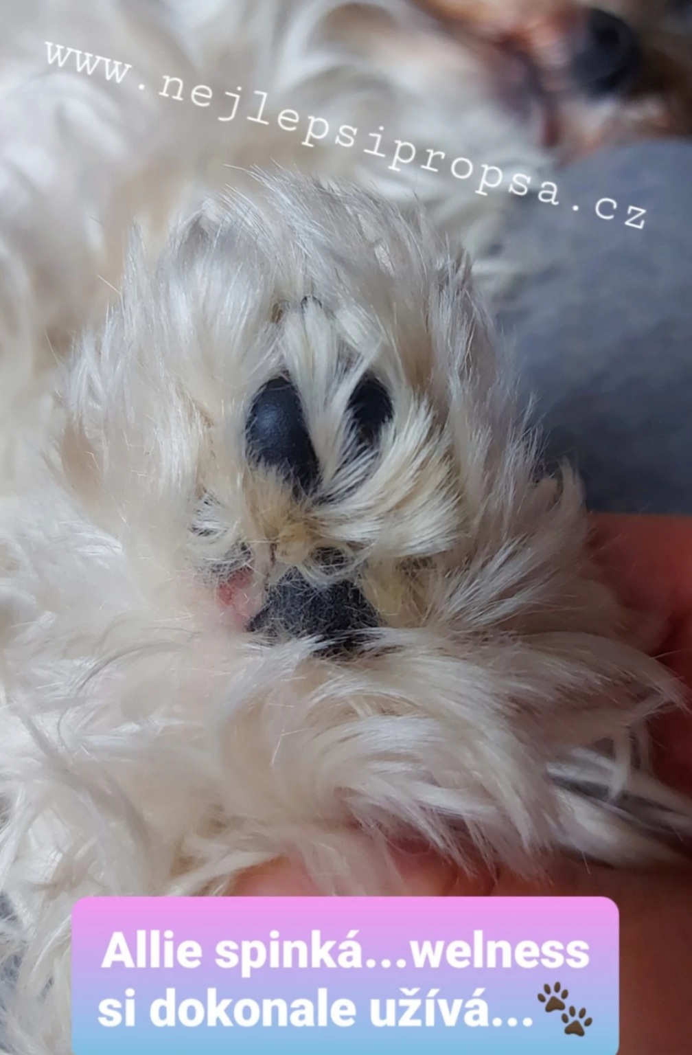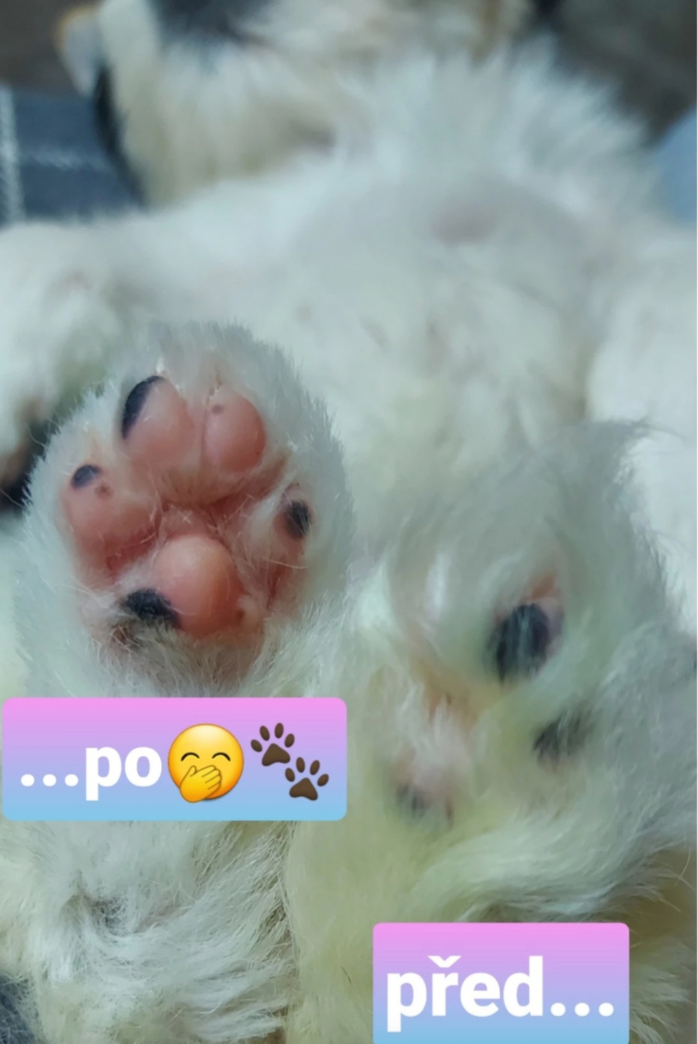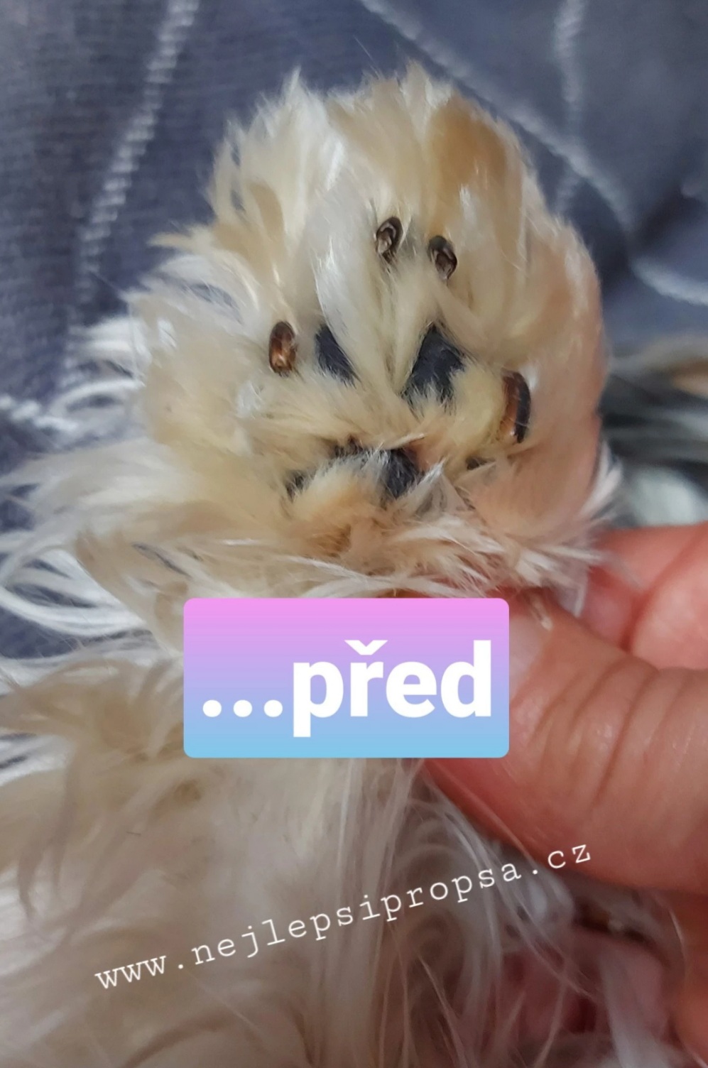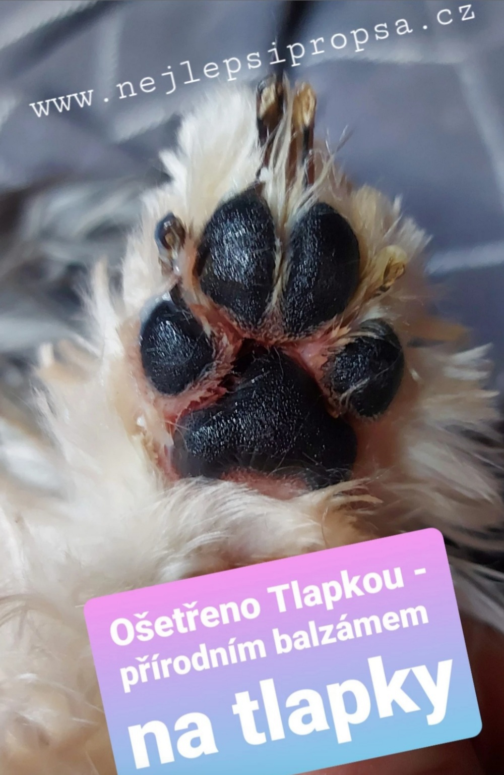 Pro celkové ošetření tlapiček po stříhání doporučuji přírodní balzám na tlapky Tlapka Eurona, který šetrně pečuje o tlapky mazlíčků, chrání je v zimě proti mrazu a v létě, když jsou tlapky pejsků vysušené, je hydratuje a vyživuje