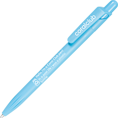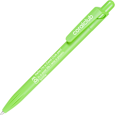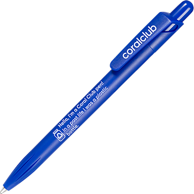 Kuličkové pero s tlačítkovým mechanismem vyrobené z PET RECYKLOVANÉHO materiálu s nápisem