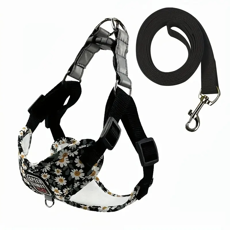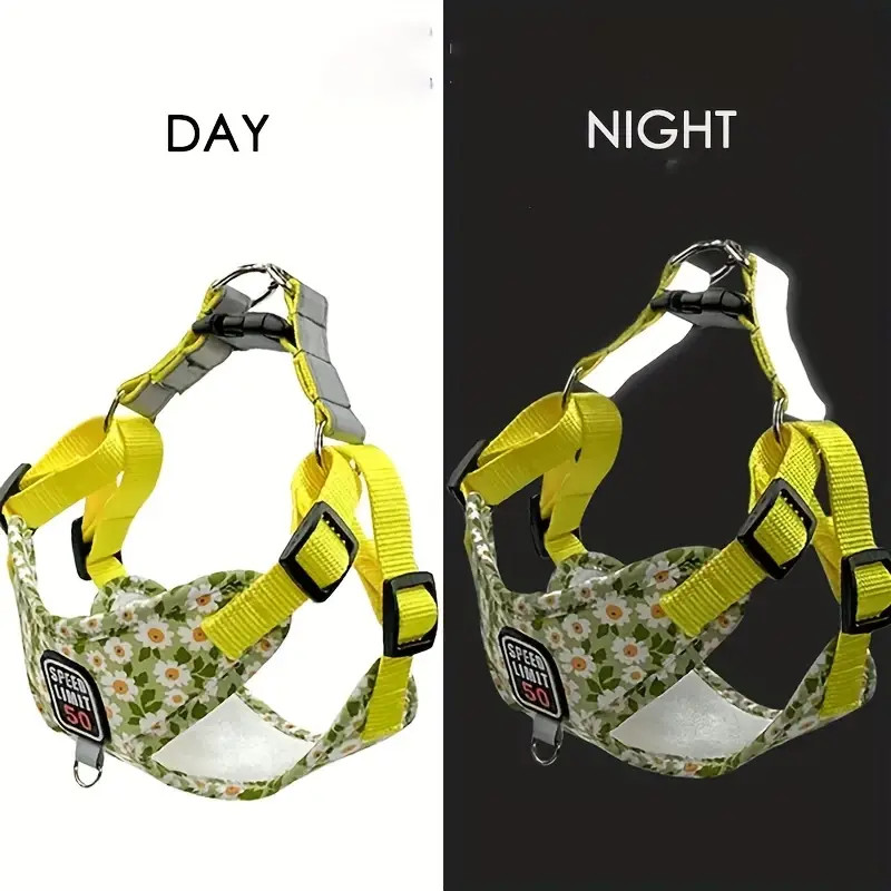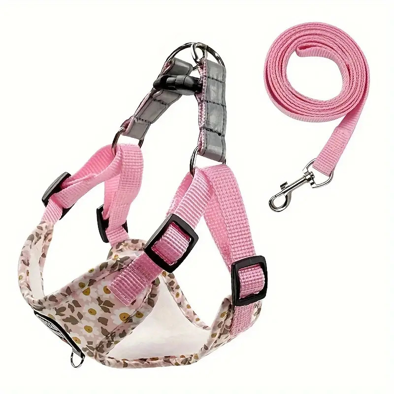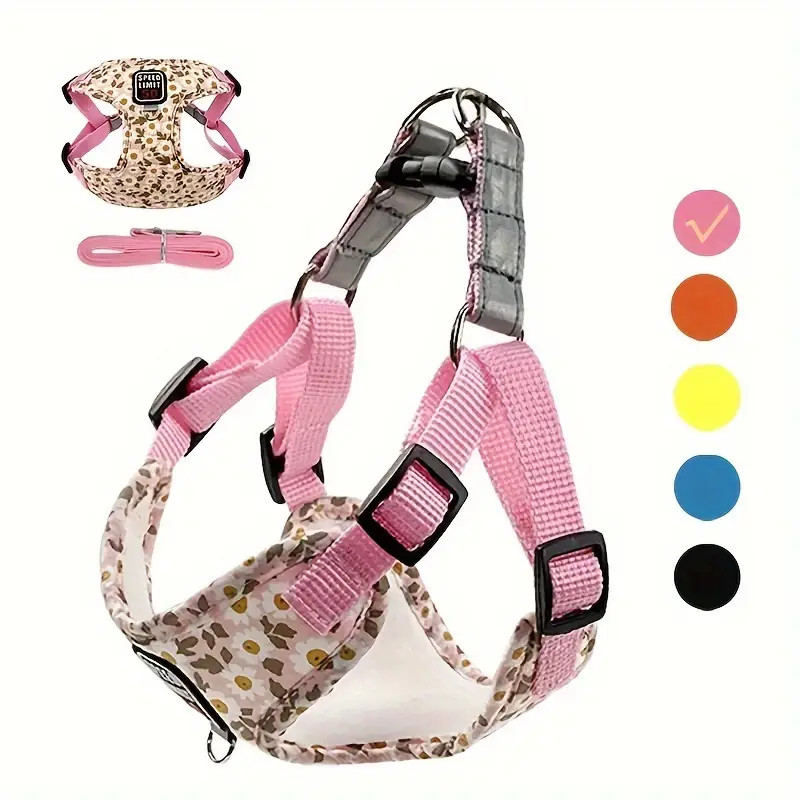 Pohodlný REFLEXNÍ postroj s vodítkem Pink Flower Fashion s nastavitelnou délkou potěší každého majitele štěňátka nebo pejska malých plemen