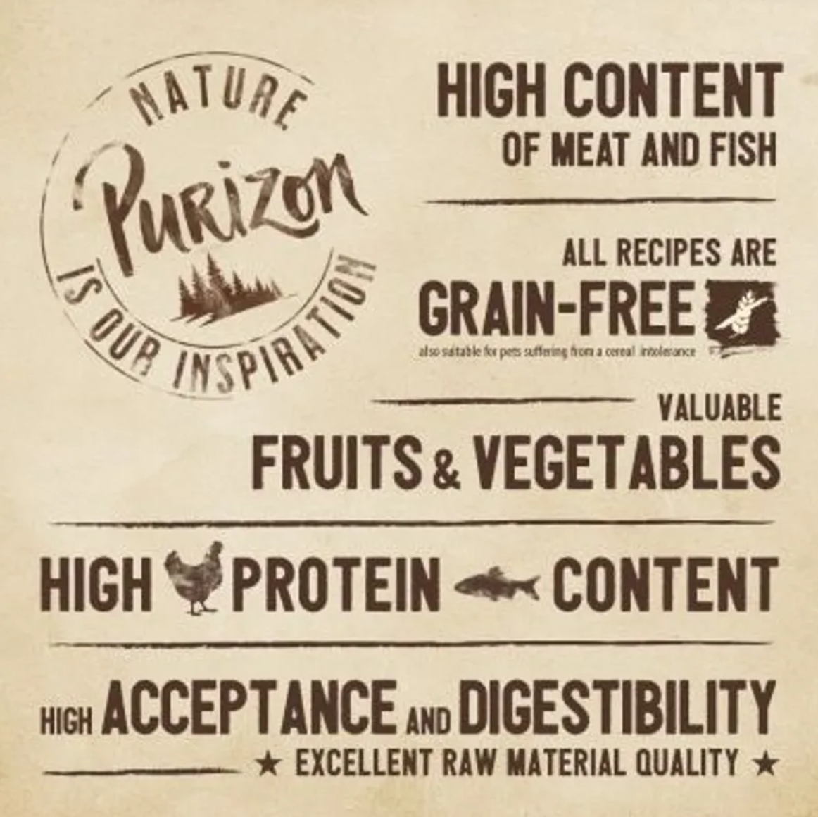 Krmivo Purizon se skládá z velmi vysokého podílu kvalitních kuřecích filetů a cenných vnitřností