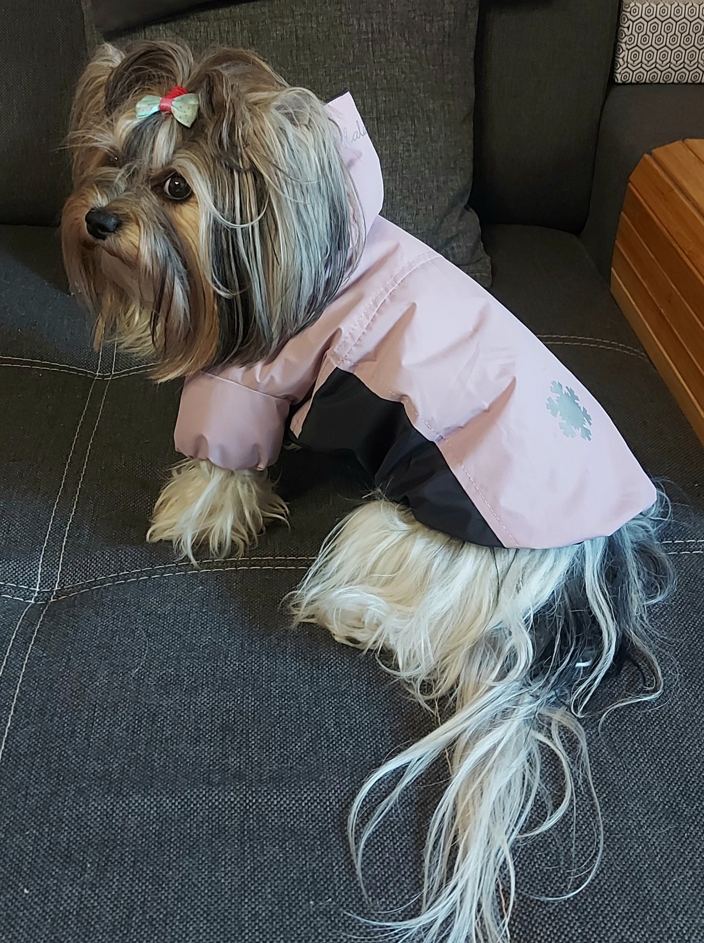 Bunda nijak NEOMEZUJE psa v pohybu a běhu, dobře drží na těle, neprofoukne, je kvalitně zpracovaná, zateplená, střihově velmi vhodná i pro rasu jorkšírský teriér, čivava, jezevčík apod.