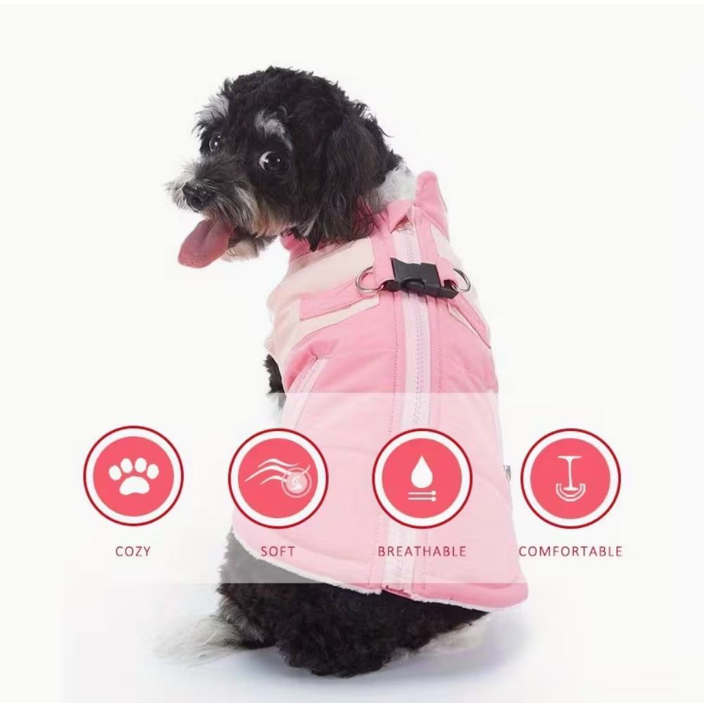 Zatepelná psí bunda s hřejivým fleece uvnitř udrží pejsky v teple, suchu a čistotě