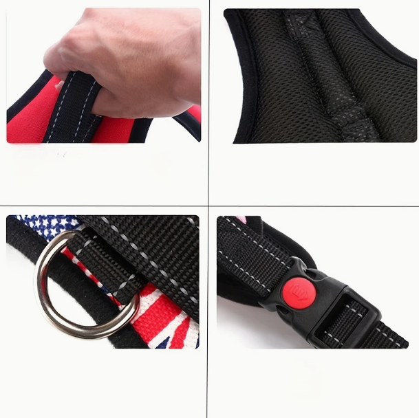 Zapínání upínacím mechanismem je na hřbetu zvířete, nerezové kolečko pro připnutí k vodítku a kvalitní pevné poutko pro přenášení pejska zajistí pohodlí nejen Vašemu pejskovi, ale také Vám