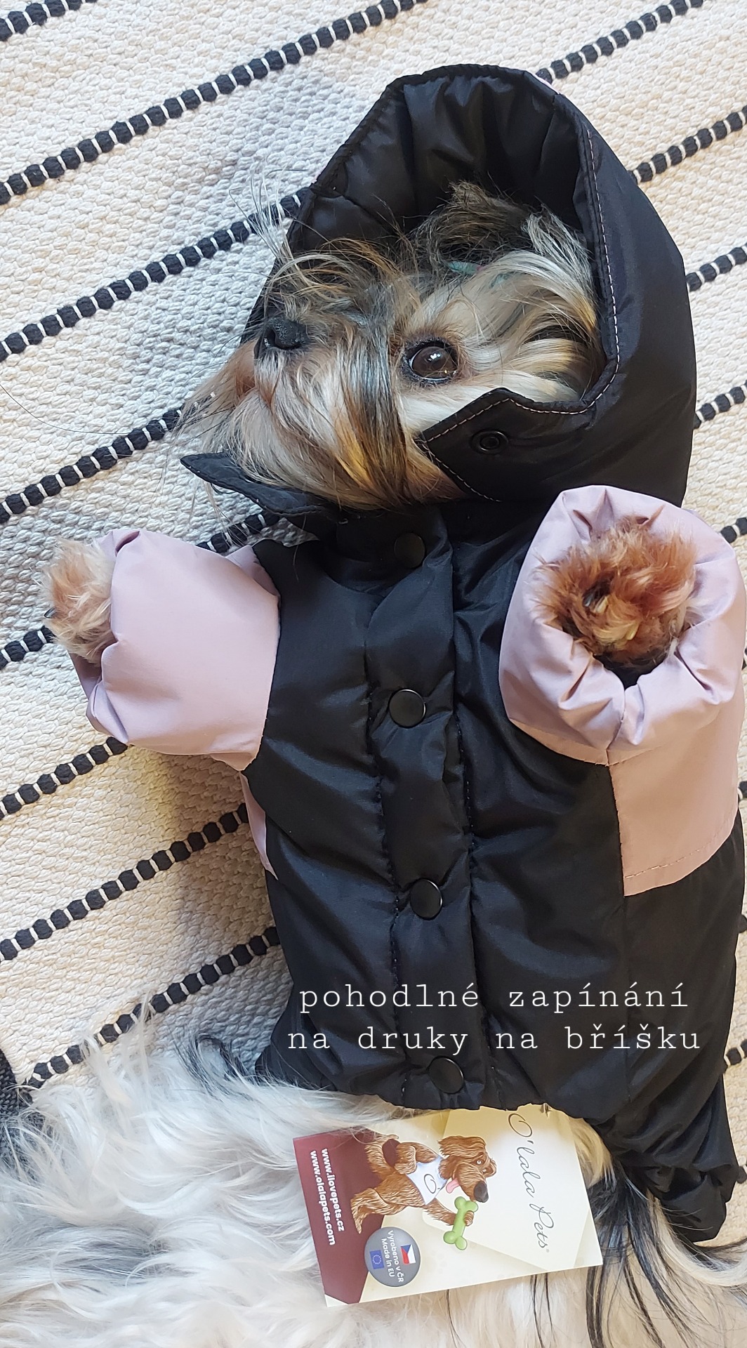 Bunda nijak NEOMEZUJE psa v pohybu a běhu, dobře drží na těle, neprofoukne, je kvalitně zpracovaná, zateplená, střihově velmi vhodná i pro rasu jorkšírský teriér, čivava, jezevčík apod.