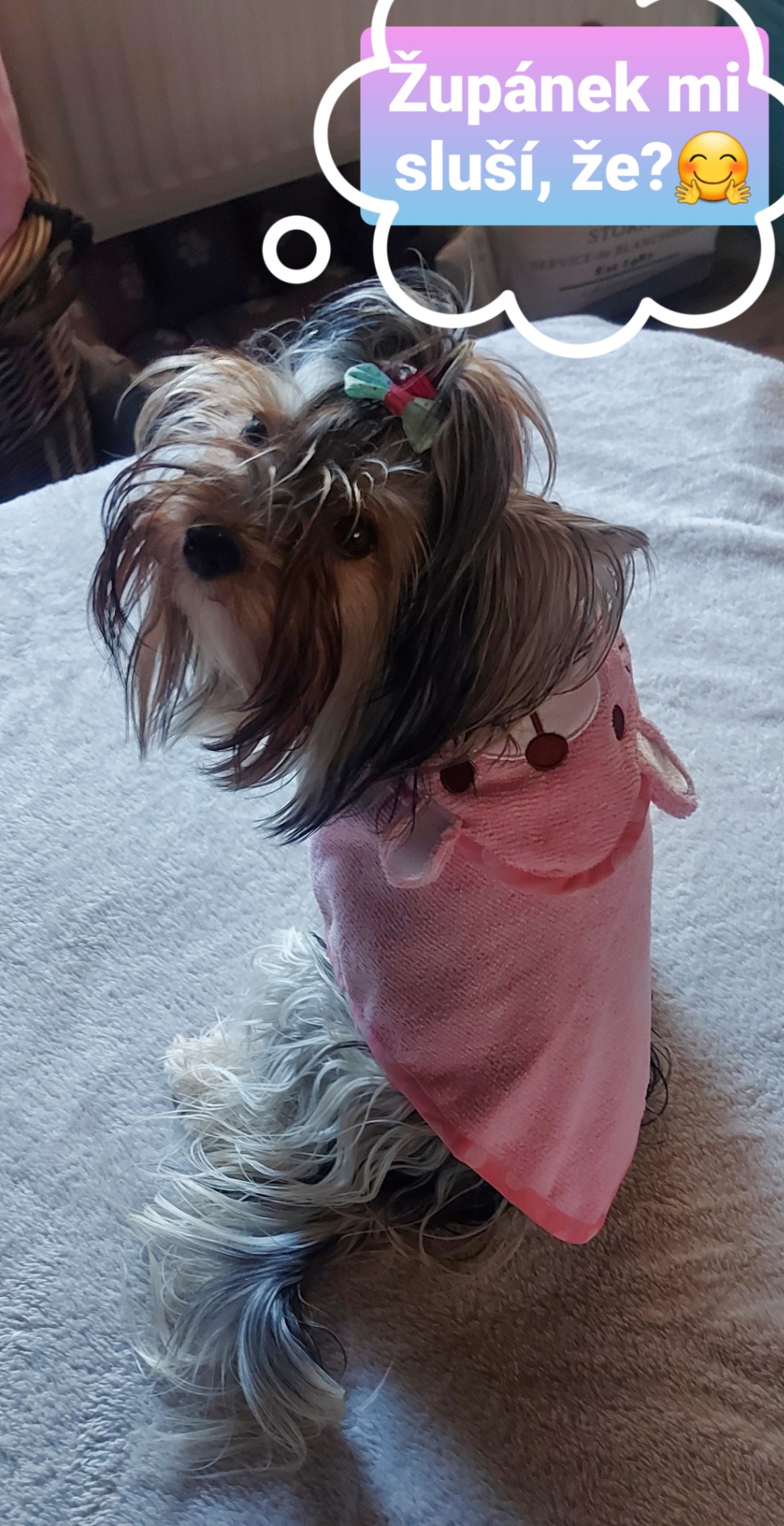 Zapínání na jeden knoflík, což usnadní manipulaci a rychlé oblečení pejska po koupeli