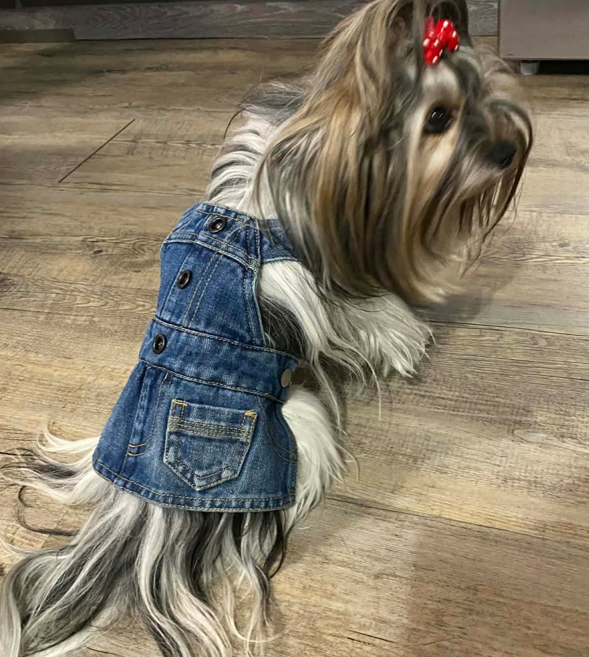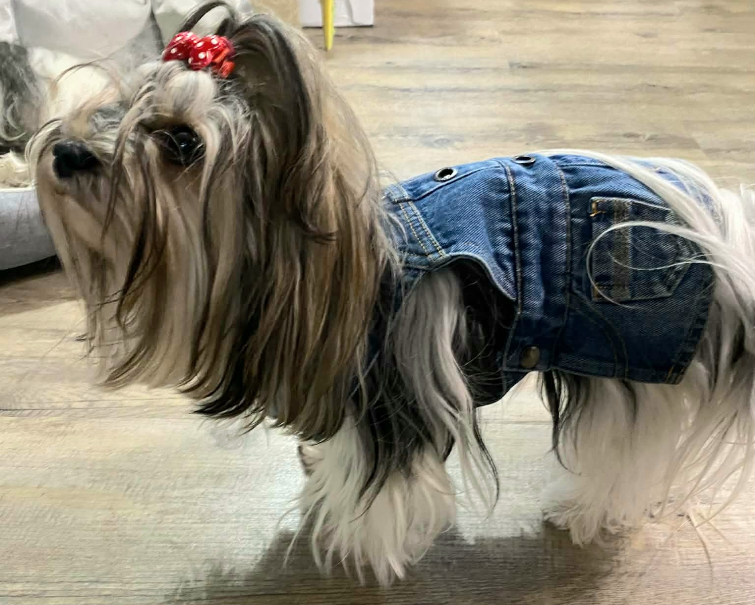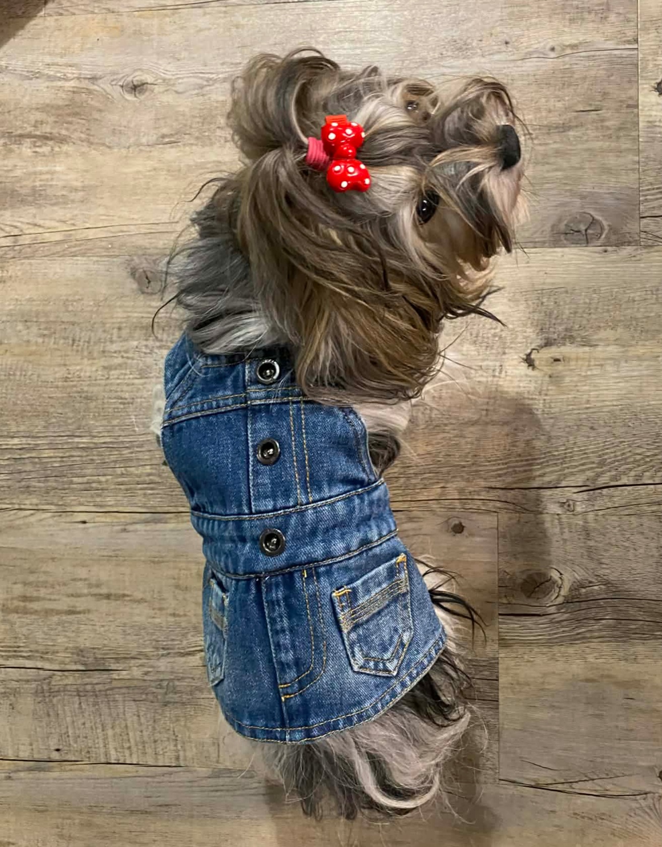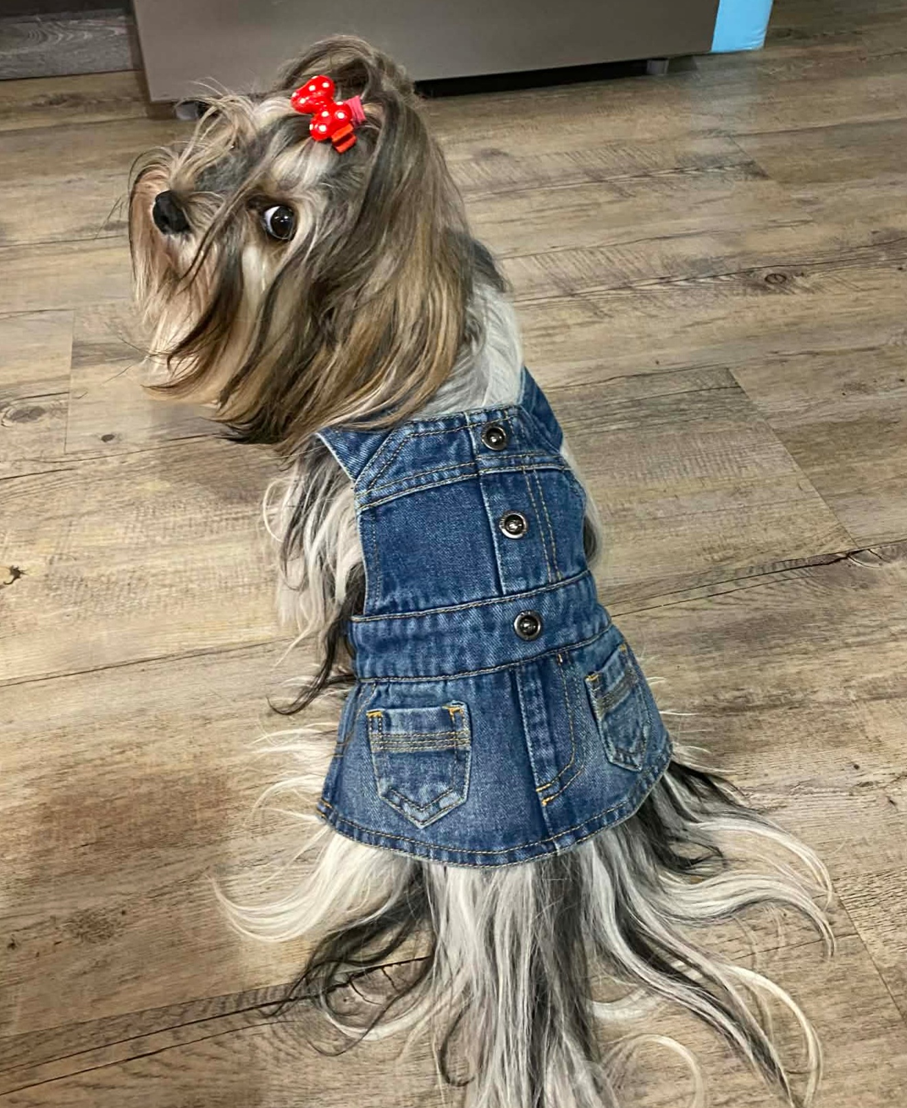 Propínací džínové šaty z bavlny budou slušet každé psí slečně