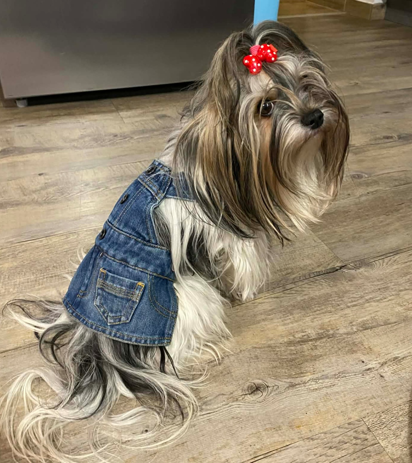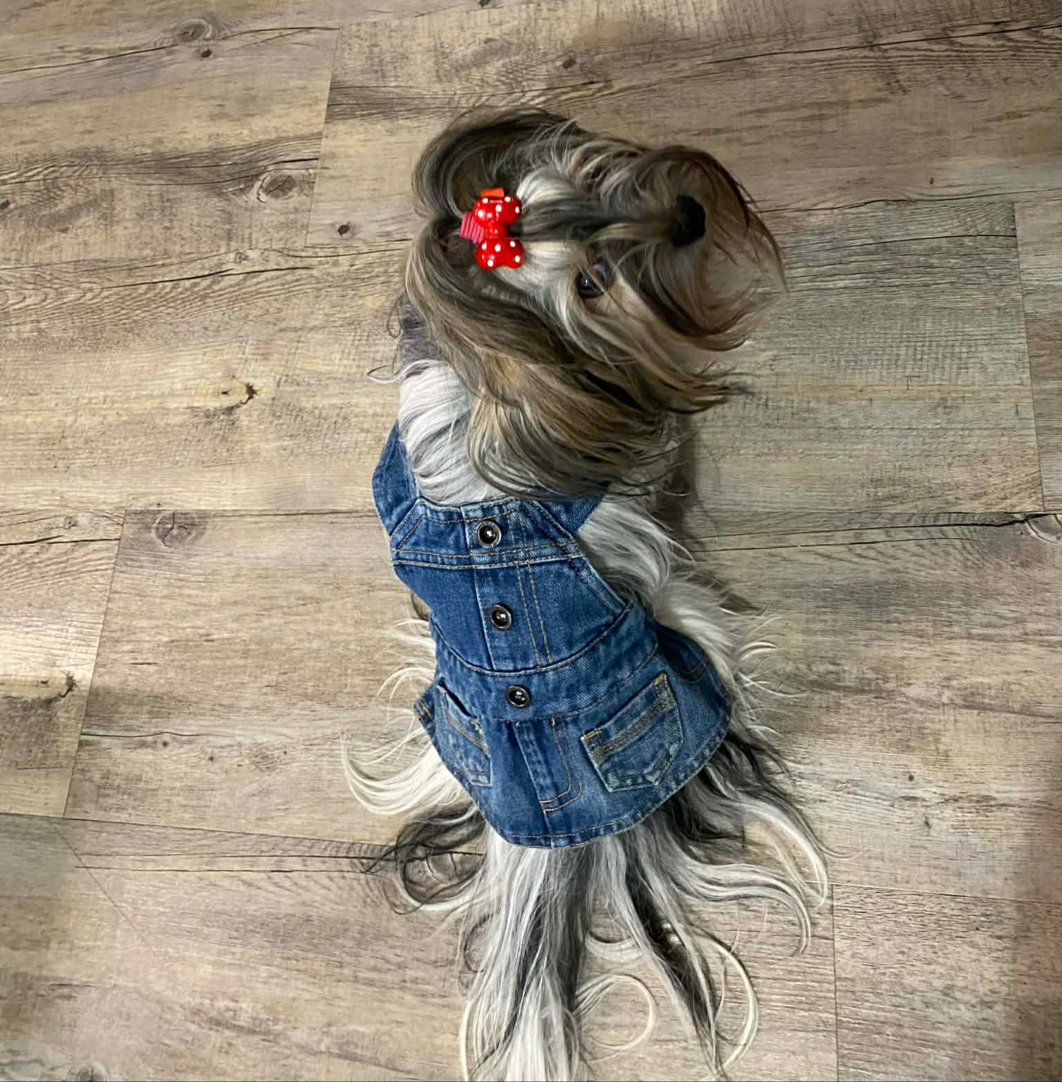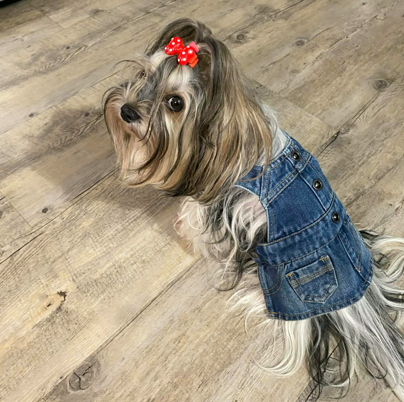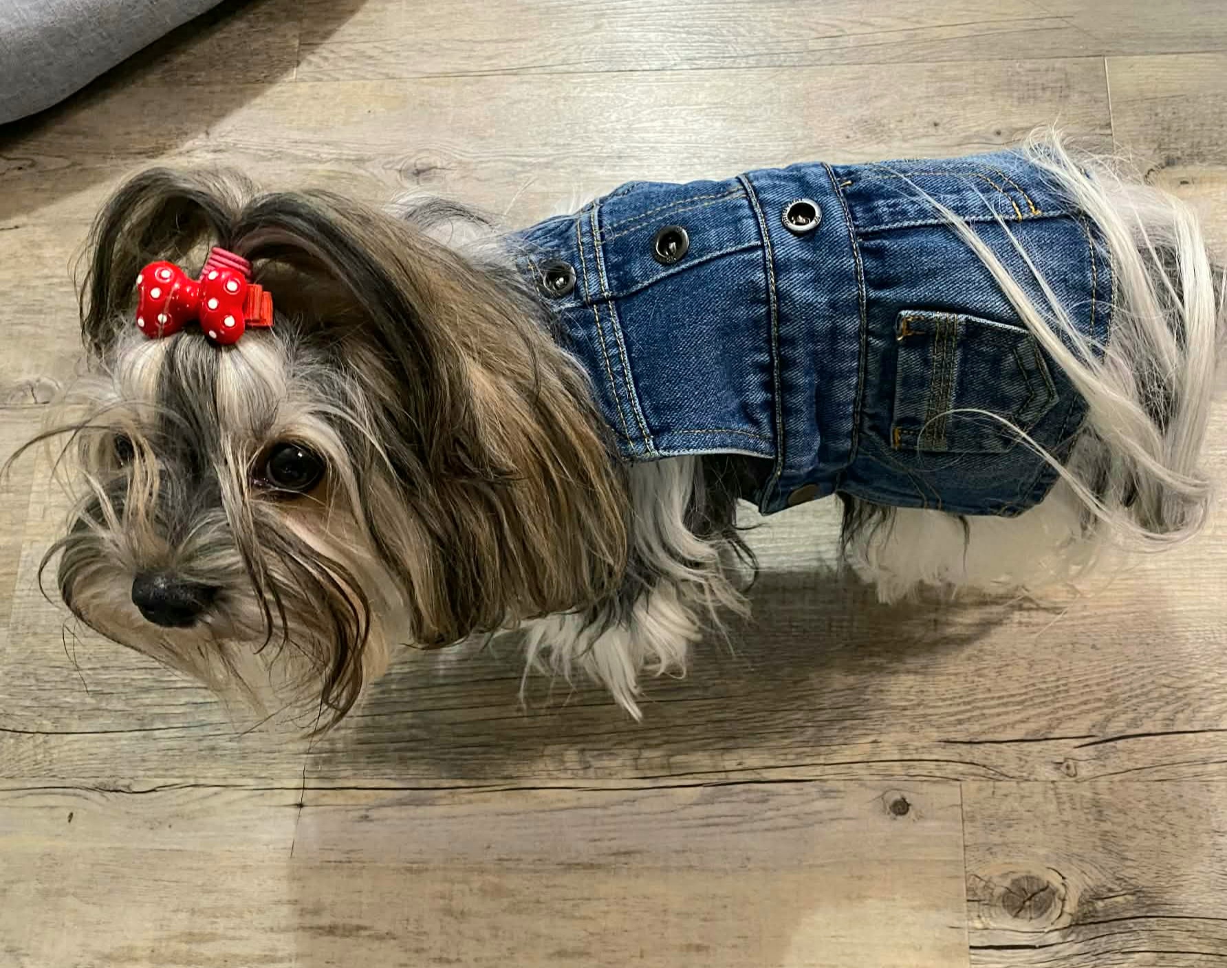 Propínací džínové šaty z bavlny budou slušet každé psí slečně