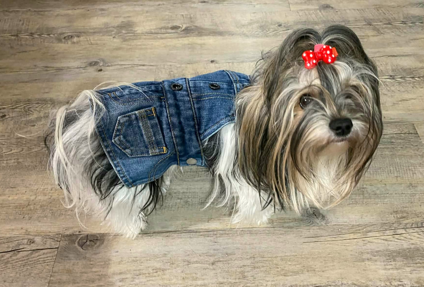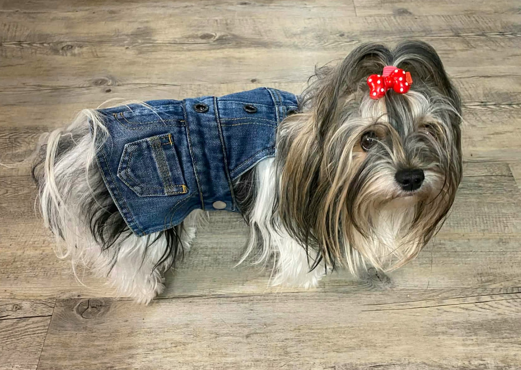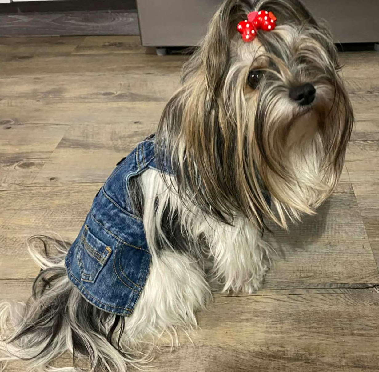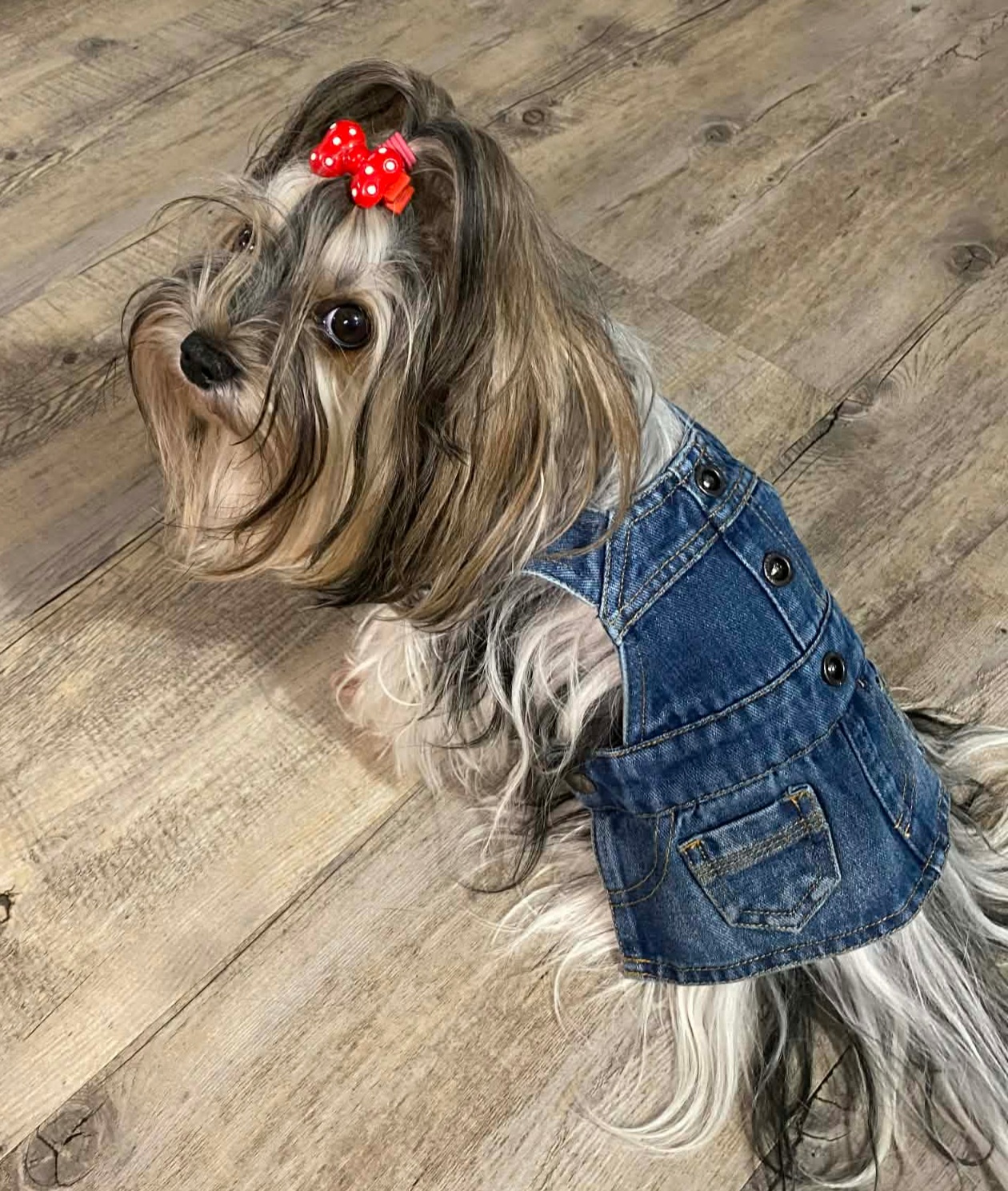 Propínací džínové šaty z bavlny budou slušet každé psí slečně
