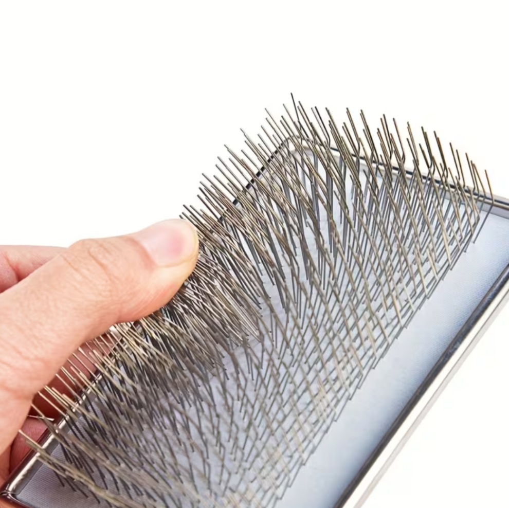 Kovové hroty jsou pevné, ale pružné, přizpůsobí se dokonale kůži psa, kvalitní materiál, kartáč Vám dlouho vydrží