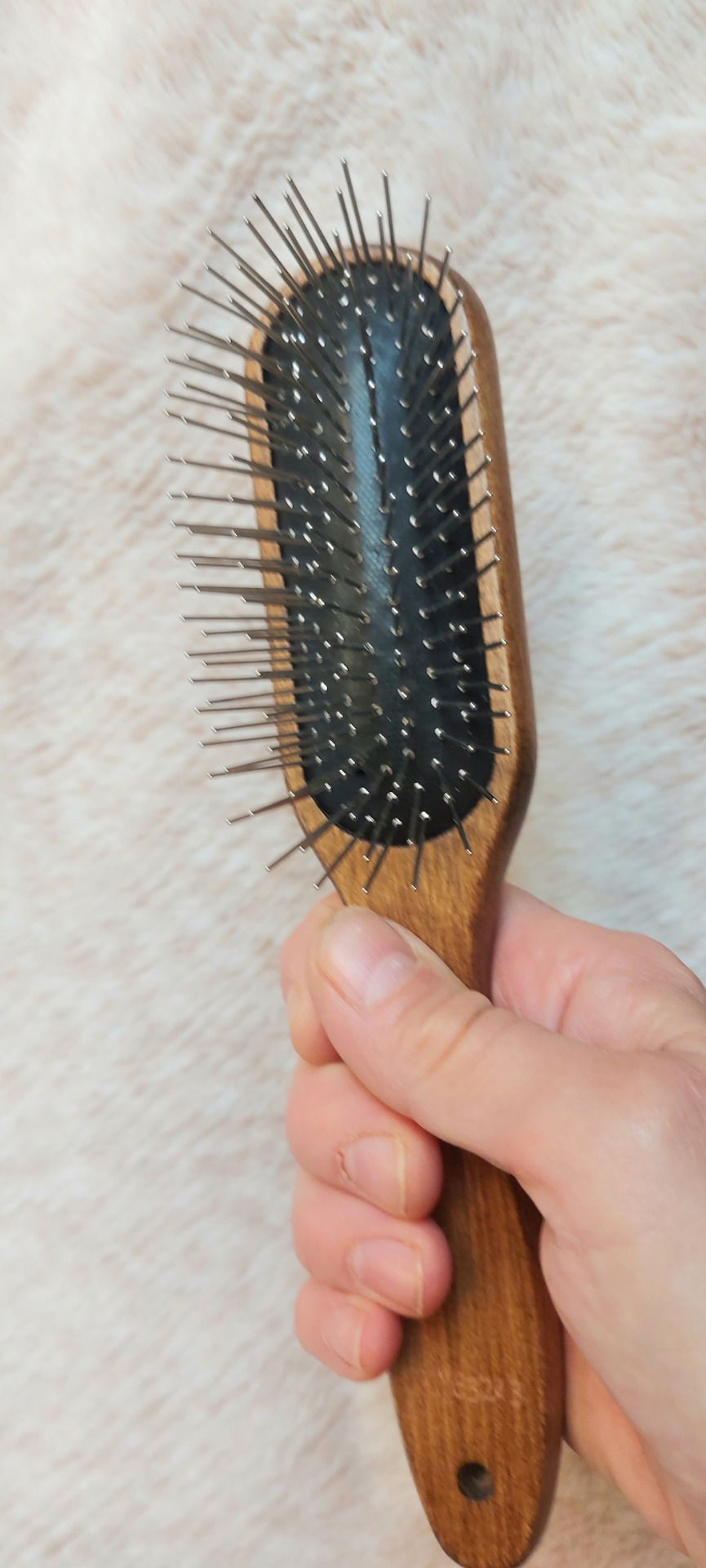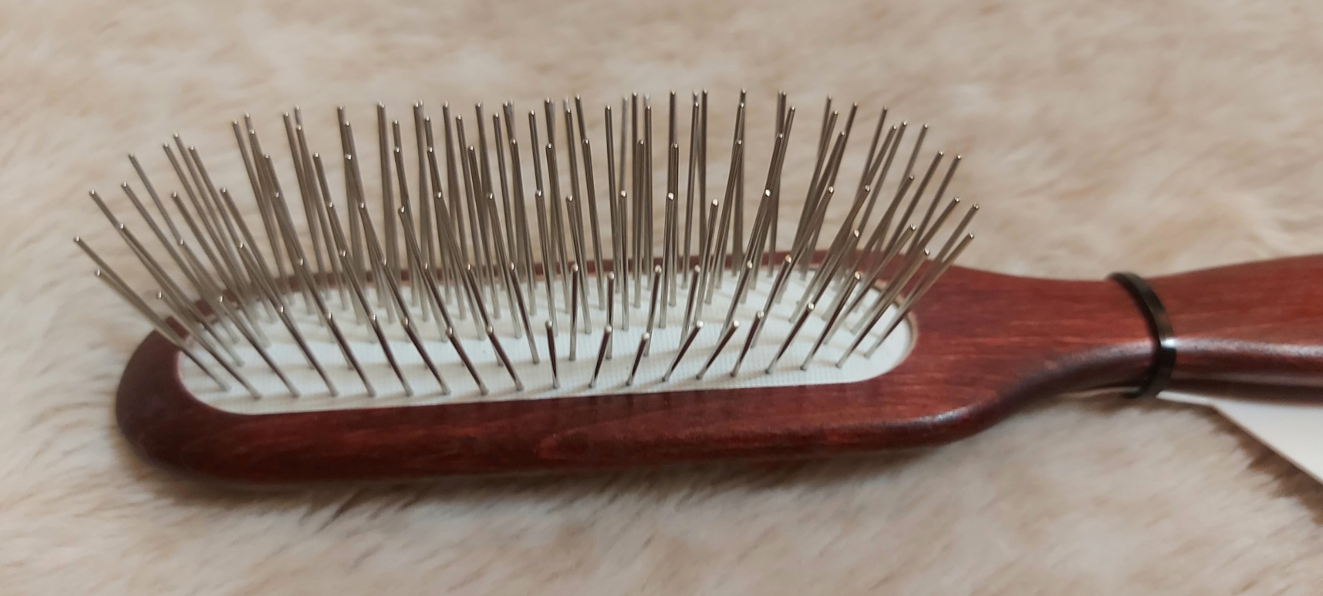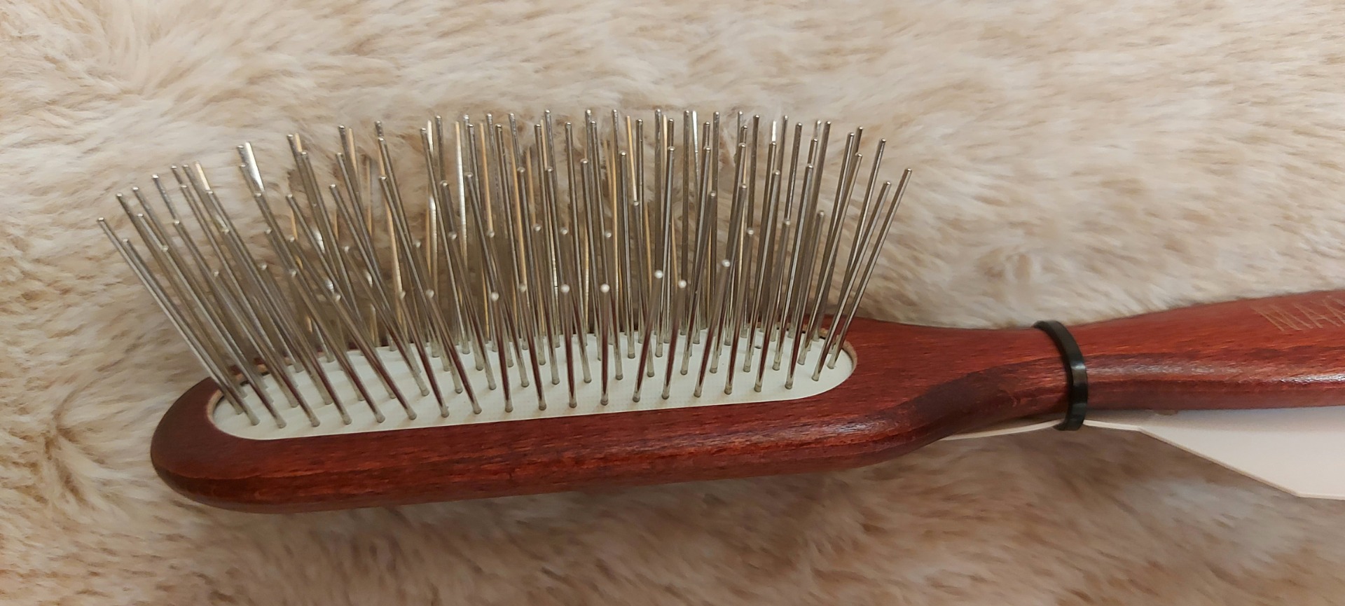 Kartáč je dřevěný z bukového dřeva, má kovové nerezové hroty se zakulacenými konci, které jsou upevněny v gumovém pneumatickém polštáři a nevypadávají, což je vždy velmi důležitý faktor při výběru kvalitního kartáče