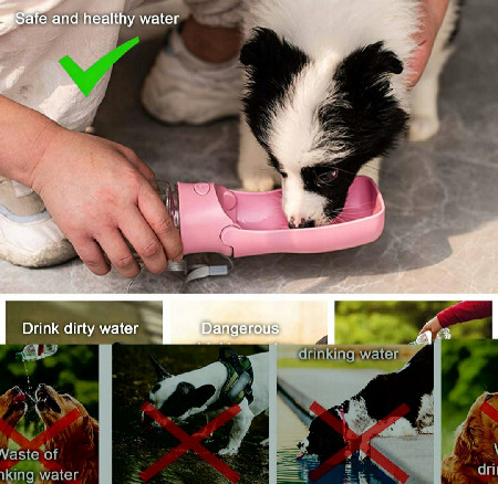 Integrovaná miska z nezávadného TPR plastu je praktická, pejskovi se pohodlně z této láhve pije