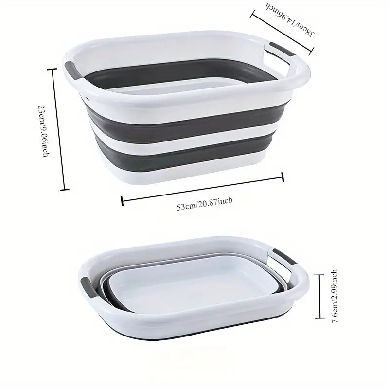 Rozměry: délka 53 cm x šířka 38 cm x výška rozložené vaničky 23 cm, výška složené vaničky 7,6 cm