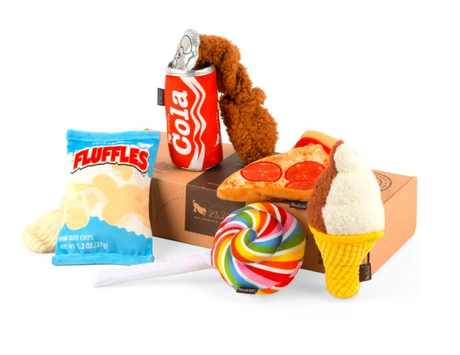 Každý den teď bude cheat day! Oslaďte život Vašemu pejskovi s originální kolekcí plyšových hraček Snack Attack od kalifornské značky P.L.A.Y.