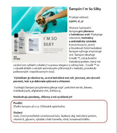 Můžete použít kondicionér So Posh pro zjemnění srsti a snadnější rozřesávání srsti