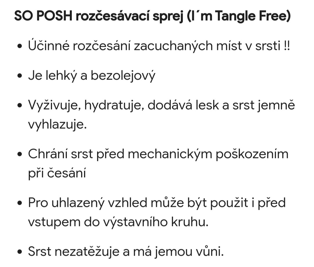 Přidává se do kondicionéru nebo ho můžete stříknout na kartáč a včesat do srsti