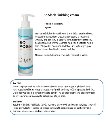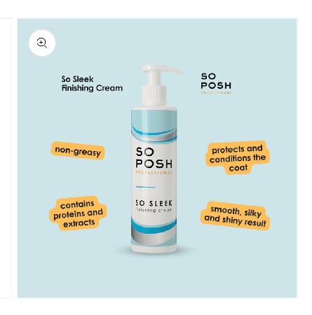 Nakonec aplikujte na vysušenou srst dokončovací gel So Posh So Sleek finishing smoothing cream pro finální úpravu výstavní srsti a kartáčem pročešte do konečné fáze