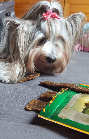 Kousáním pamlsku si pejsek posiluje dásně a žvýkací svaly