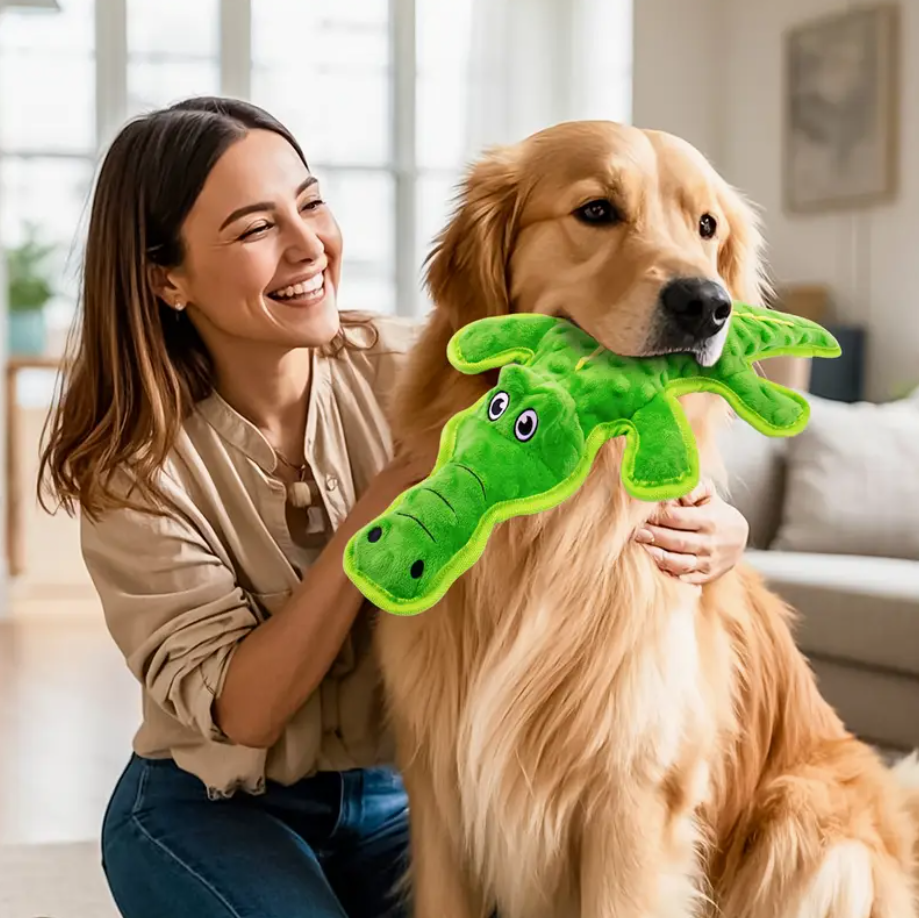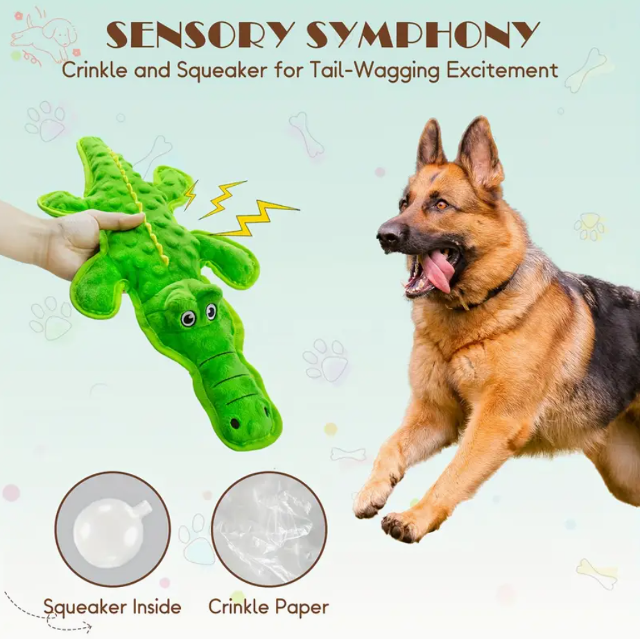 Pískací a šustící hračka Krokodýl pro psy a štěňata