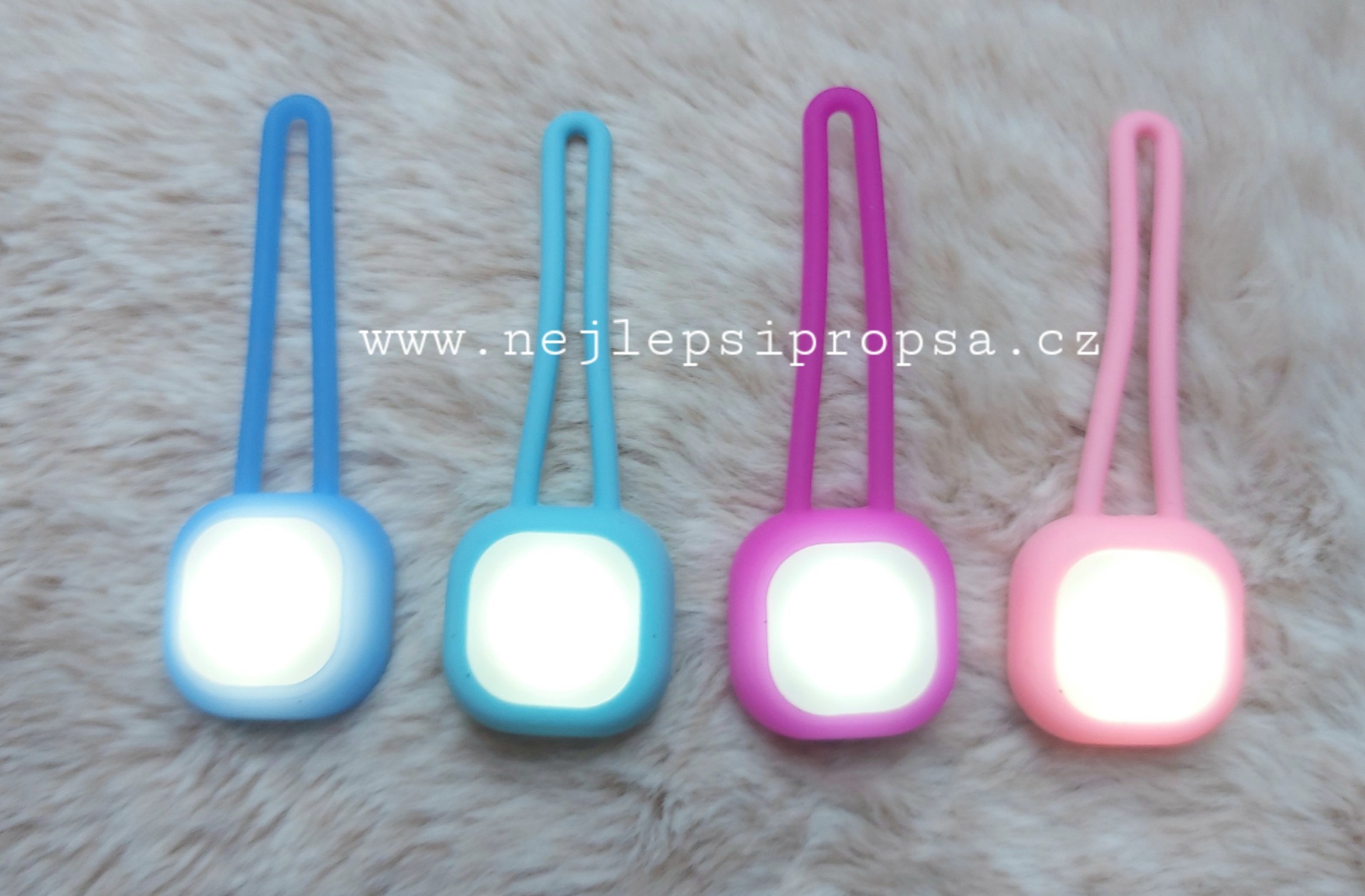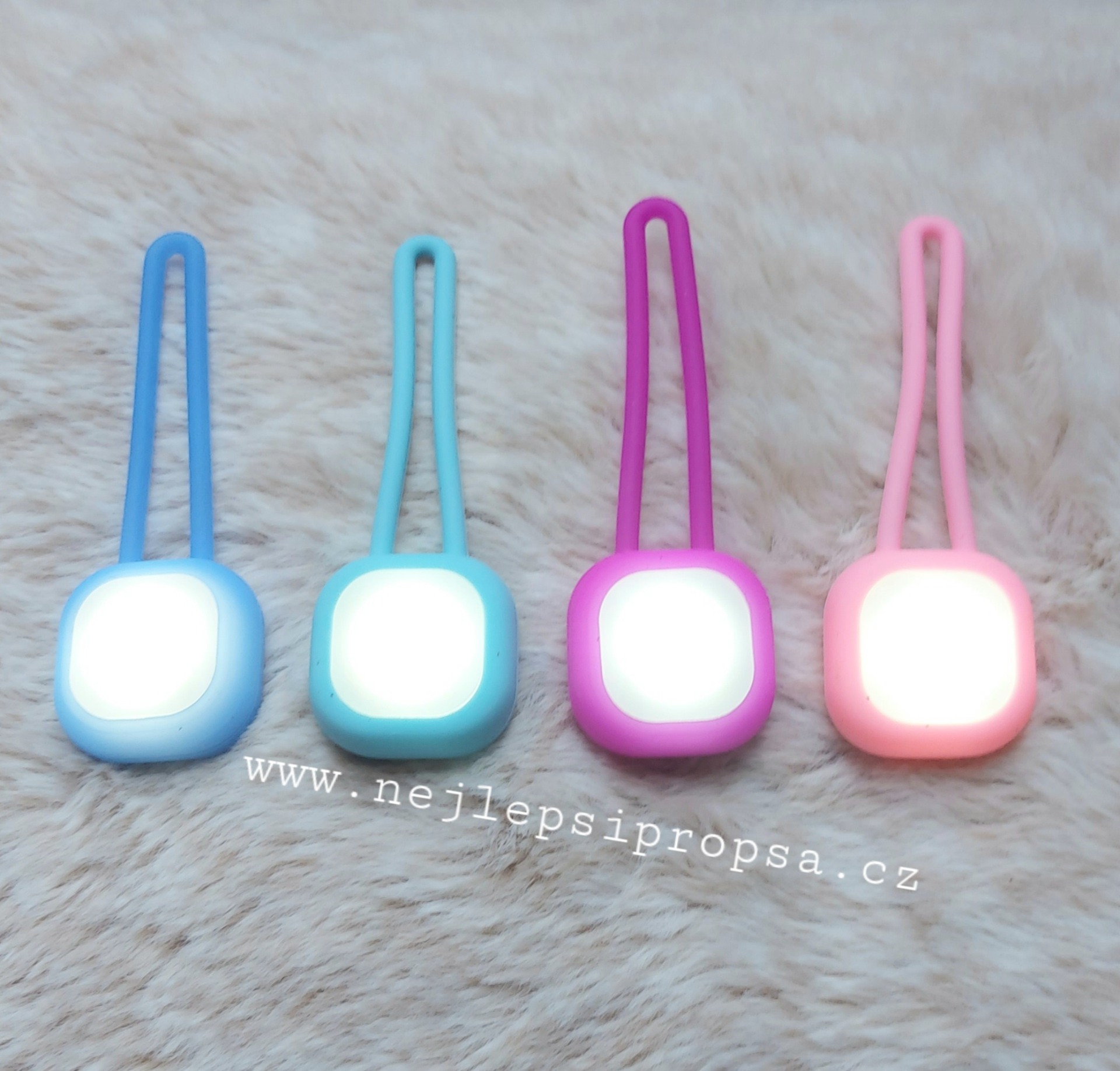 Bezpečné silikonové poutko, díky kterému světýlko snadno připevníte na postroj nebo ke kroužku na obojku Vašeho mazlíčka, k vodítku, na Vaši bundu, ledvinku, batoh apod.
