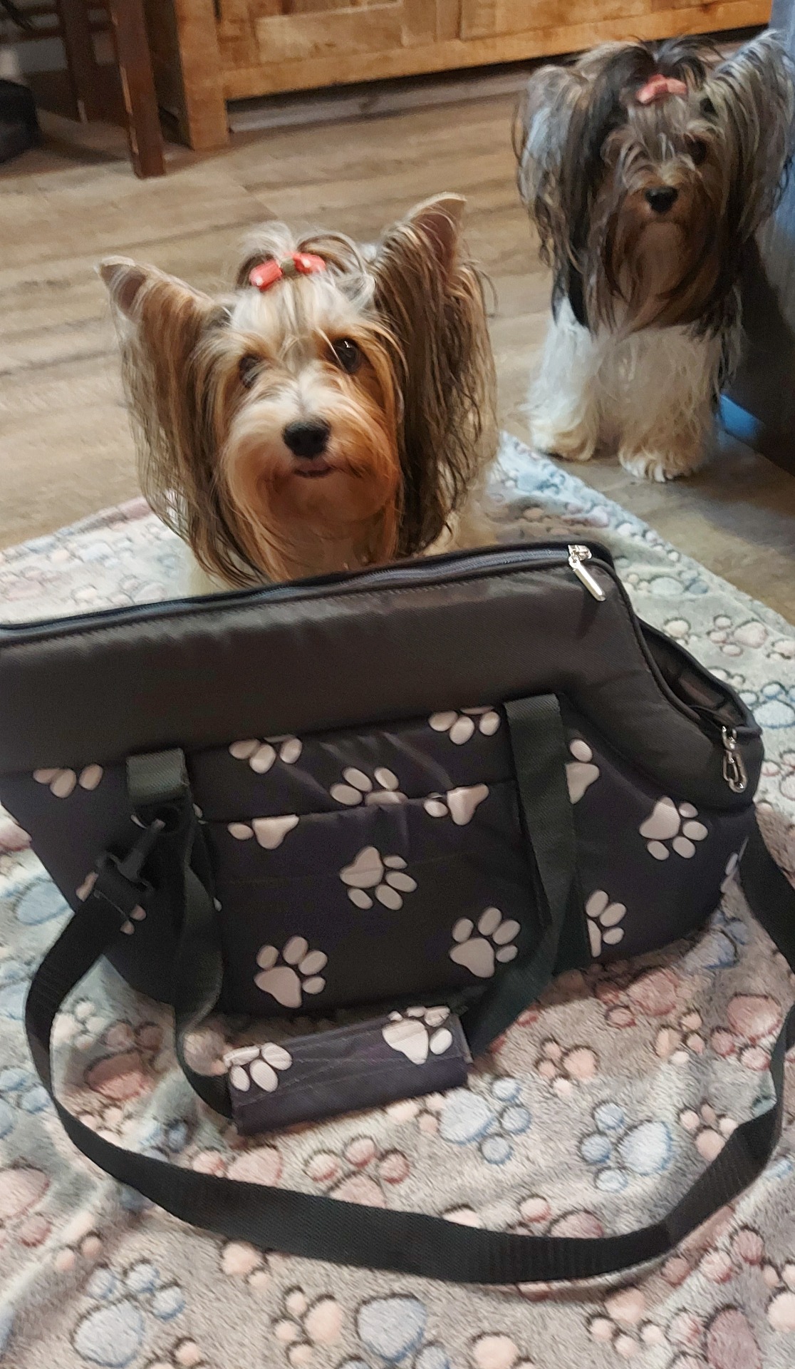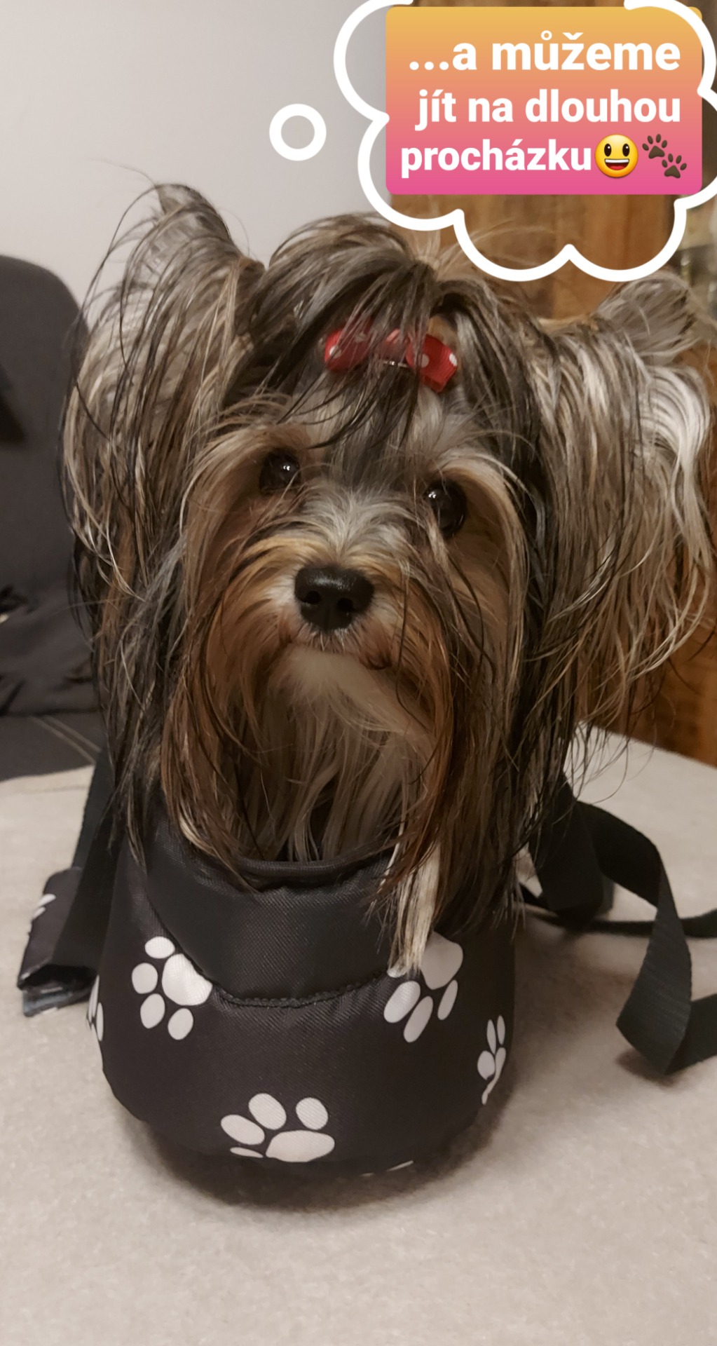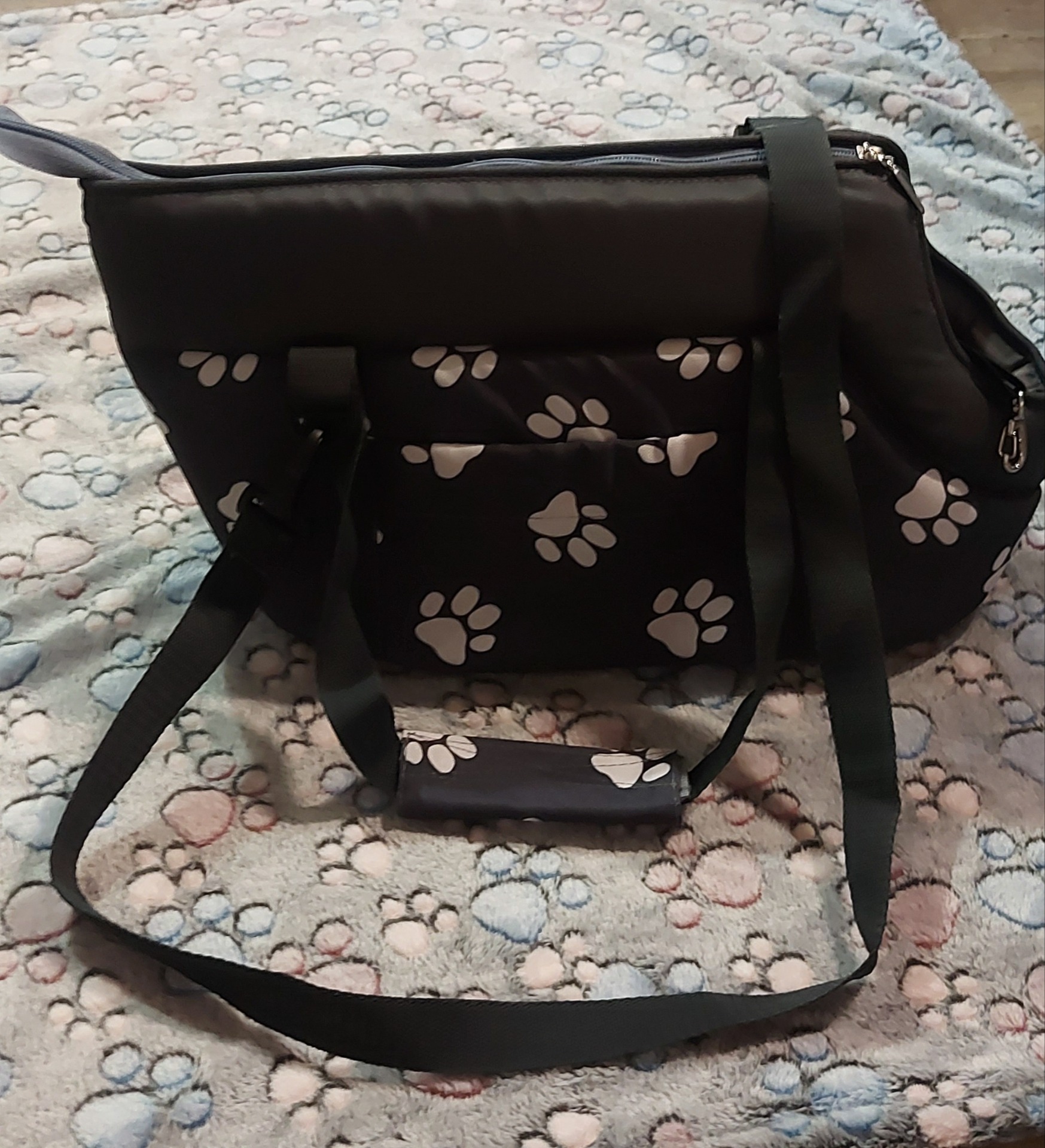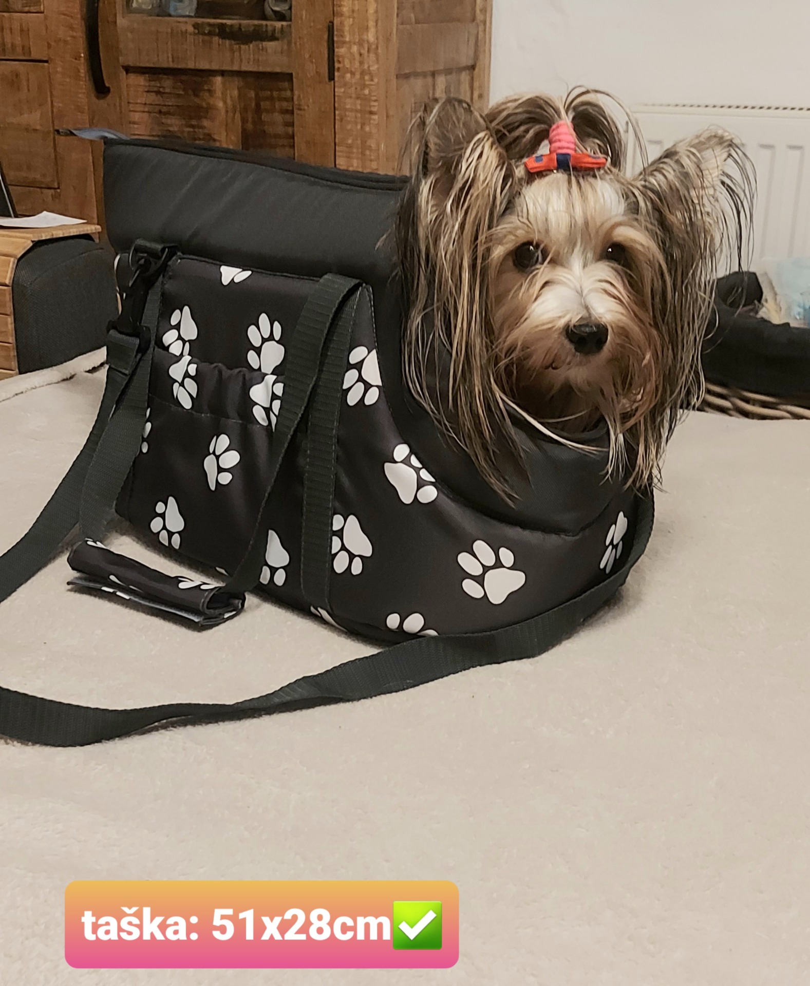 Taška je vybavena karabinou na připnutí pejska, aby nevyskočil