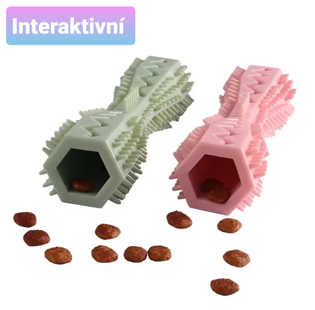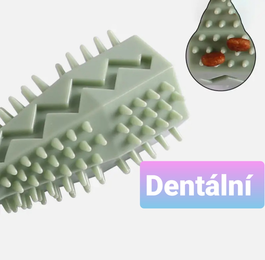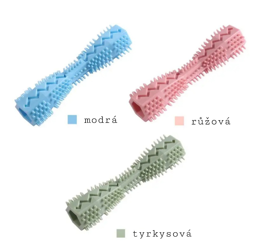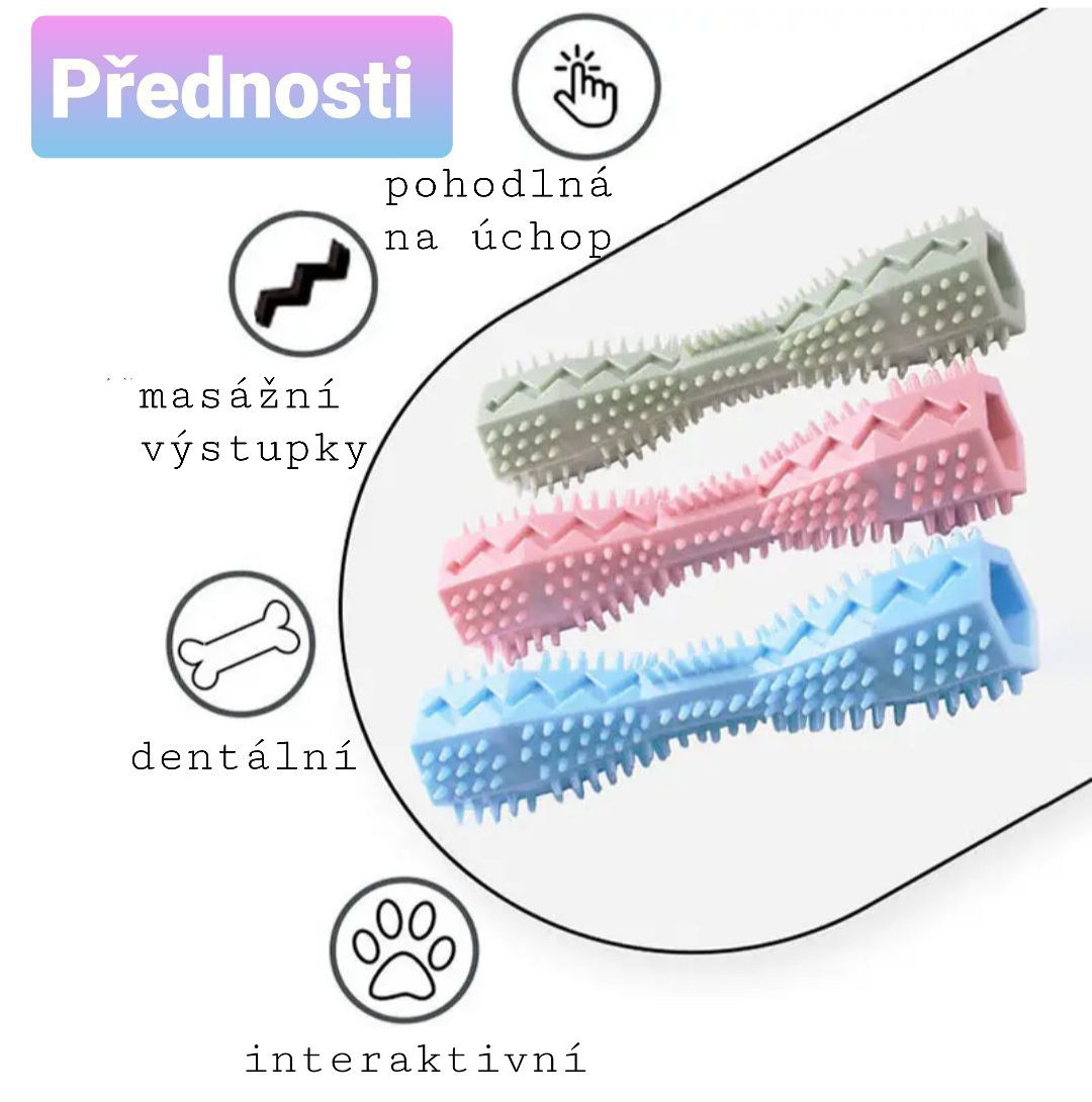 Pro nenásilné čištění zubů potřete hračku trochou zubní pasty. Pejsek si olizováním a žvýkáním hračky zároveň vyčistí zuby. Někteří pejsci si neradi čistí zuby, tento způsob bude pro ně zábavný a prospěšný