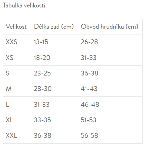 Hrudník: 44 cm = skutečná délka trička přes celý obvod hrudníku, tj. velikost ideální na obvod hrudníku psa 30-40 cm