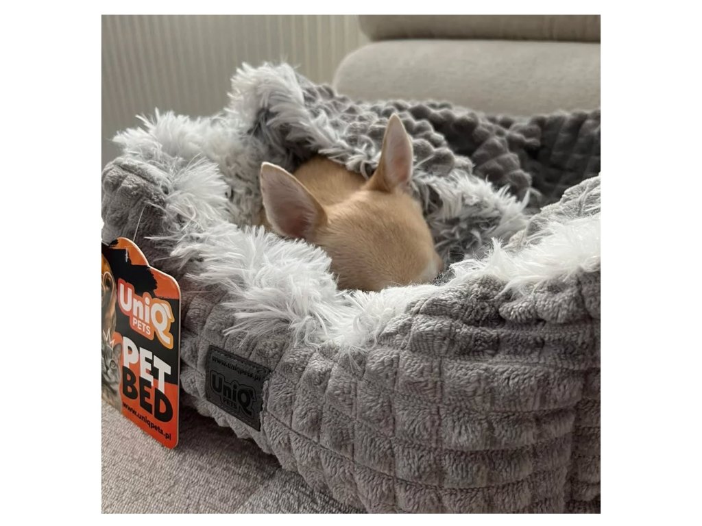 Esteticky vyrobený pelíšek v neutrální šedé barvě skvěle zapadne do každého interiéru