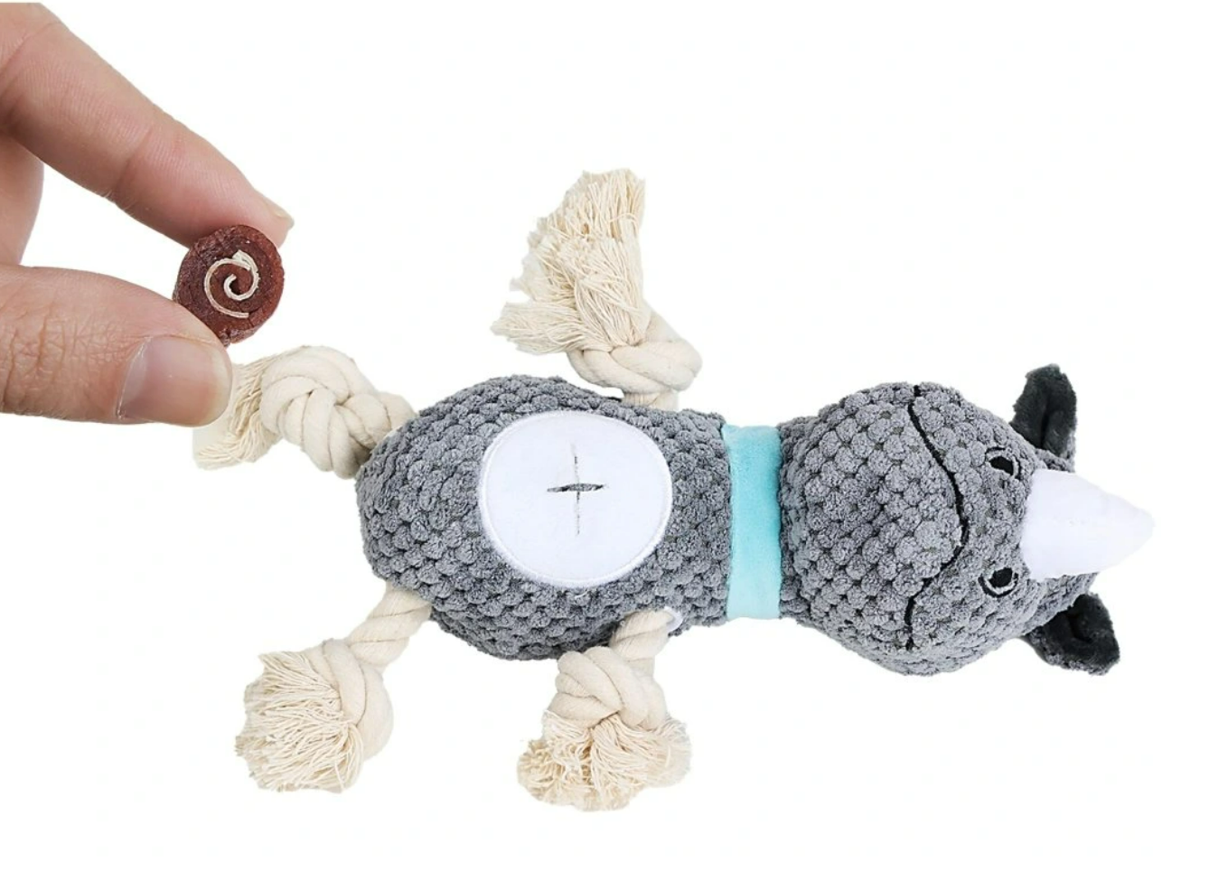 - Otvor na pamlsky: Praktický otvor na břiše, do kterého můžete schovat pamlsky a zpestřit tak hru