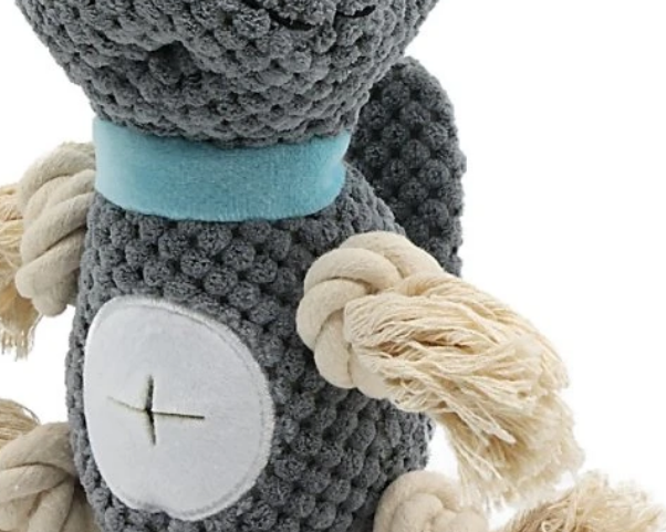 Materiál: měkký a odolný manšestr 70% polyester, 30% bavlna, žvýkací lano 100% bavlna