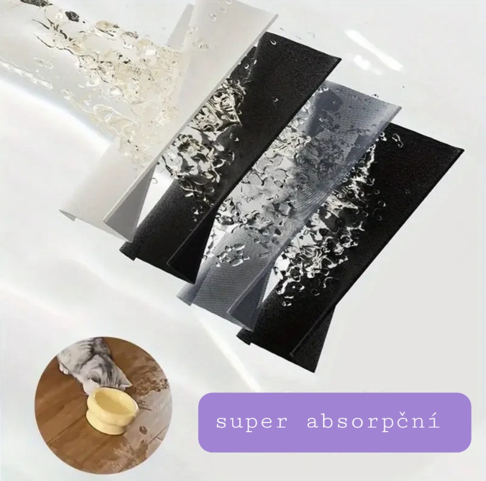 Podložka okamžitě absorbuje vylité tekutiny a je rychleschnoucí, tudíž nemusíte mít obavy o okolí misek Vašeho mazlíčka