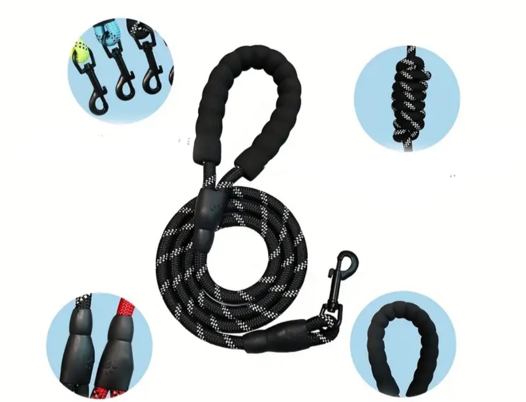 Kvalitní, pevné a odolné klasické vodítko s REFLEXNÍM VLÁKNEM a polstrovanou rukojetí
