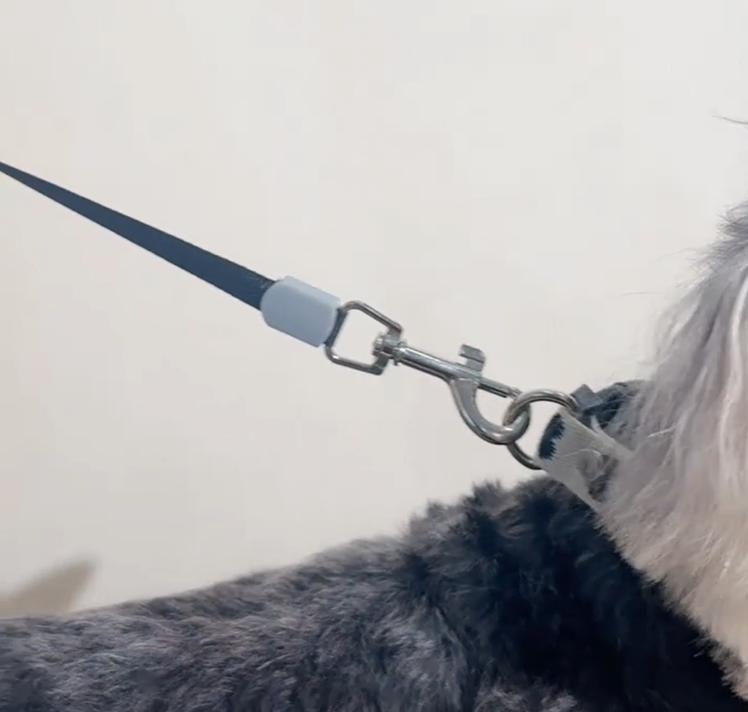 Vodítko má na konci karabinu, která se snadno upevní za obojek pejska a na druhé straně pohodlnou rukojeť
