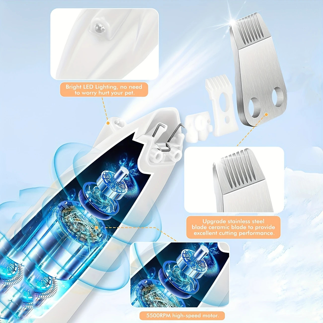 Tichý, výkonný a bezpečný zastřihovač chloupků s LED osvětlením a rychlým USB nabíjením vhodný pro psy, štěňátka i kočky