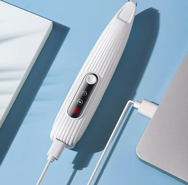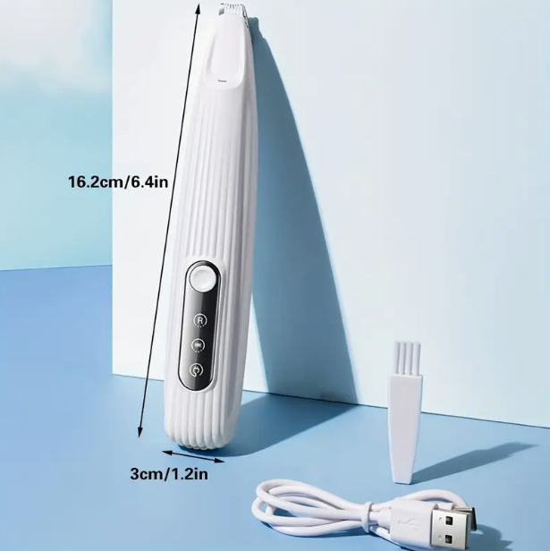 Tento zastřihovač chloupků pro domácí mazlíčky se vyznačuje kompaktním tělem a úzkou hlavou, ideální pro úpravu na malé ploše