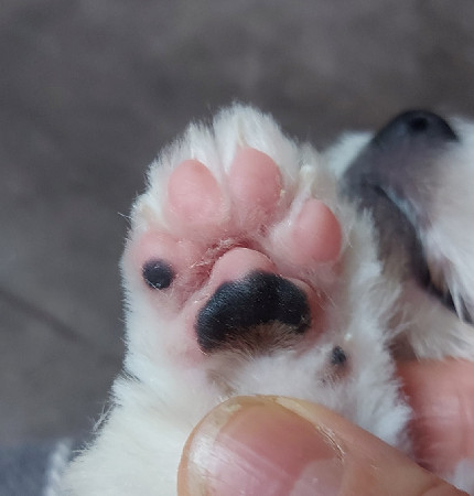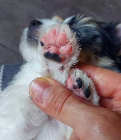 Alespoň 1x denně si dejte malé množství Tlapky na ruce a vetřete pejskovi do tlapiček. Vůbec nevadí, pokud bude Tlapku olizovat, je přírodní a bezpečná