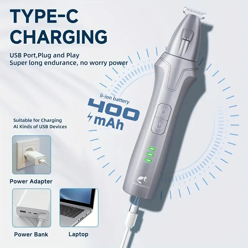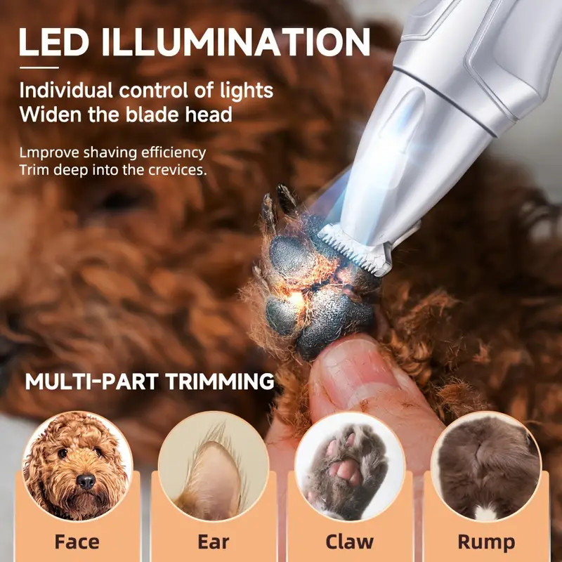 Profesionální tichý, výkonný a bezpečný zastřihovač chloupků PAW TRIMMER PROFESSIONAL s LED osvětlením, rychlým USB nabíjením a širokou stříhací hlavicí 1,8 cm pro přesný střih