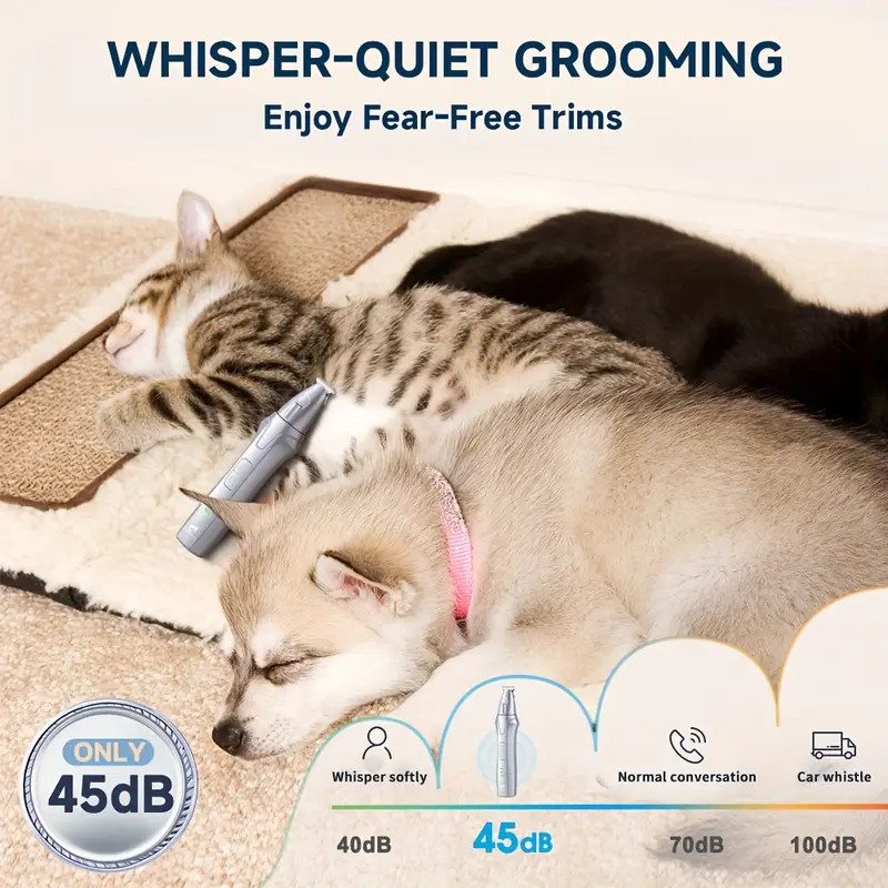 Doporučuji! Používám zastřihovač na tlapky, uši a zadeček našich pejsků. Strojek pejskům ani štěňátkům nevadí, ošetření mají jako wellness, užívají si to. Zvuk strojku jim také nevadí. Odměňte vždy svého mazlíčka pamlskem za trpělivost při stříhání, aby se na další ošetření tlapek těšil