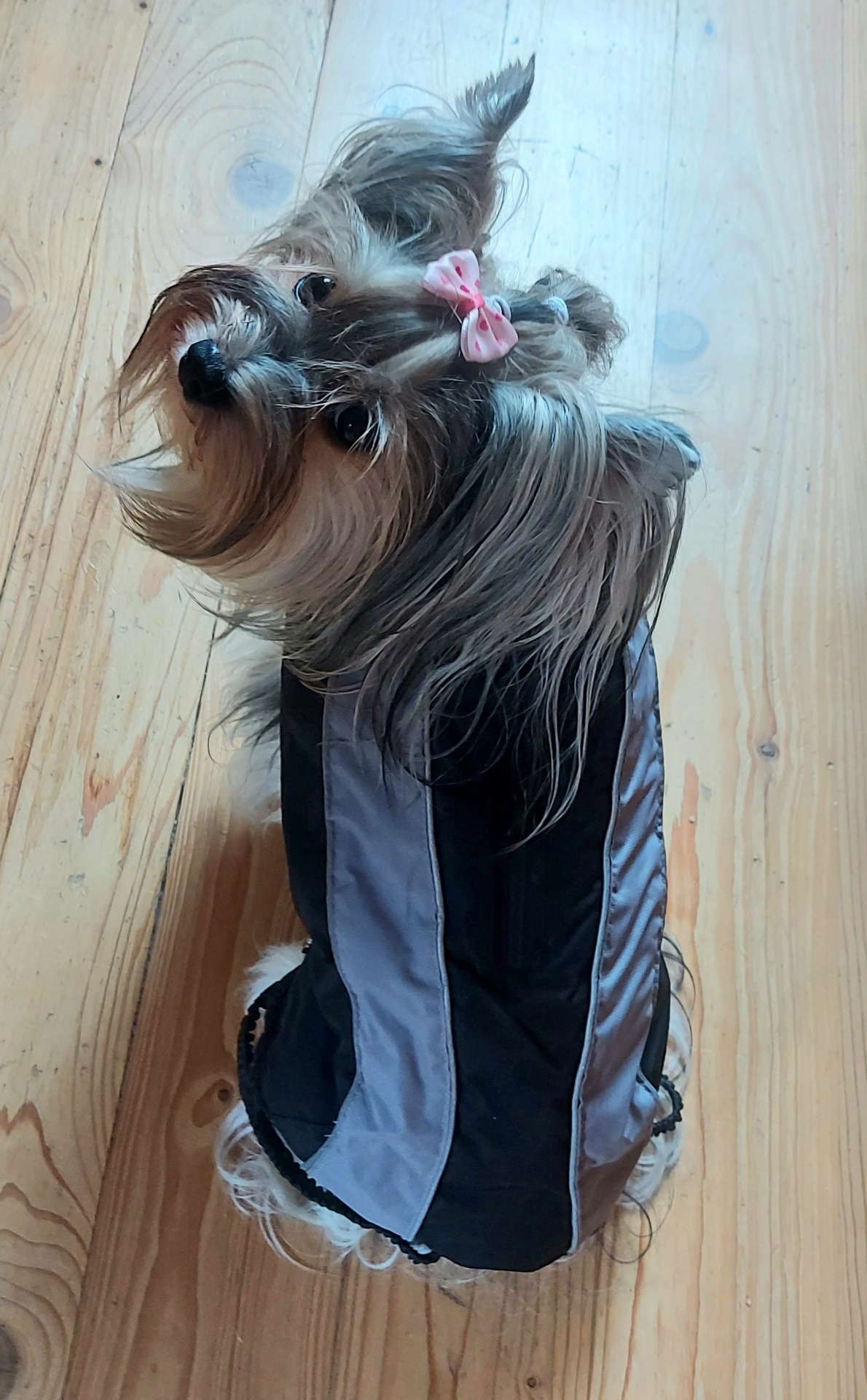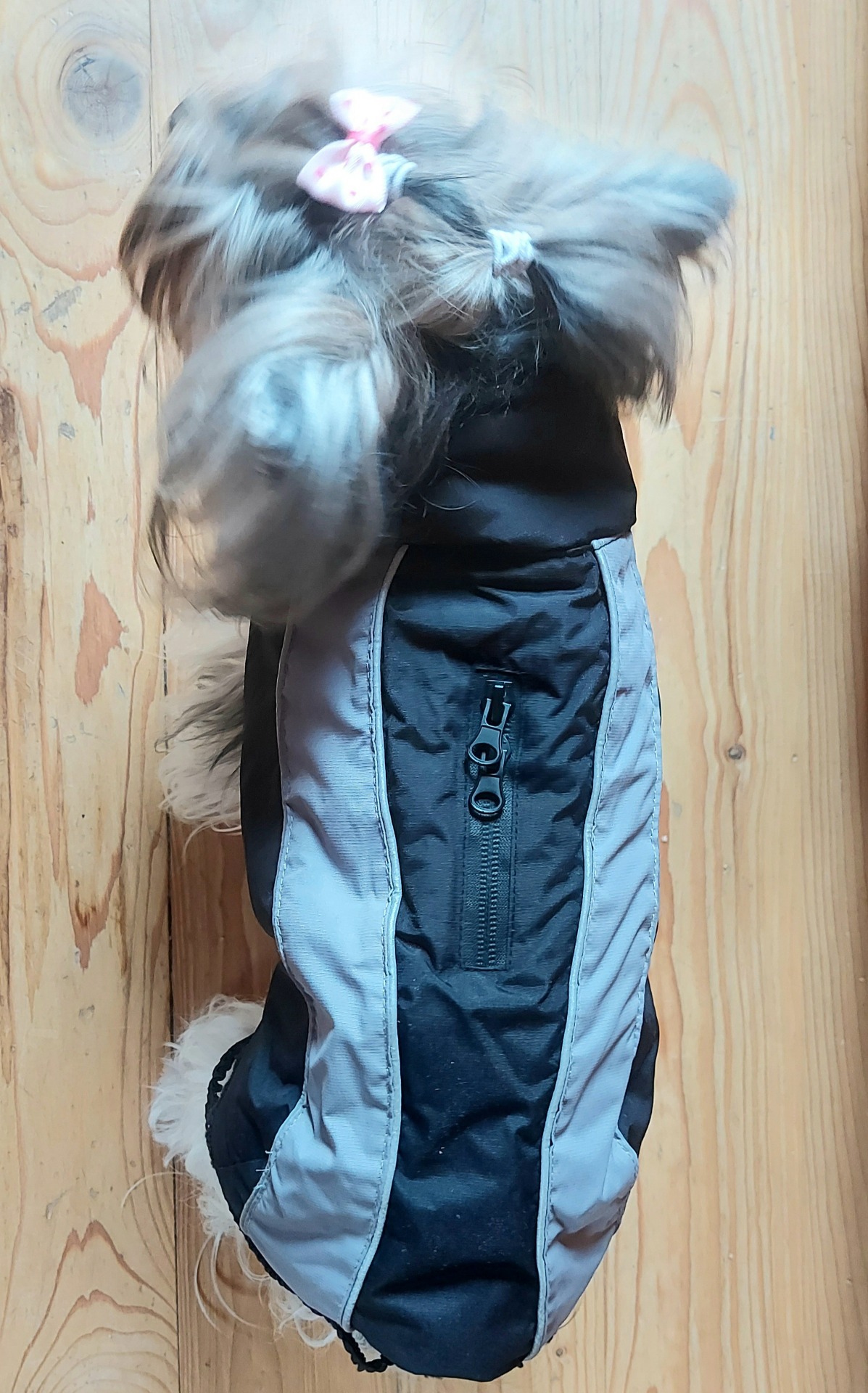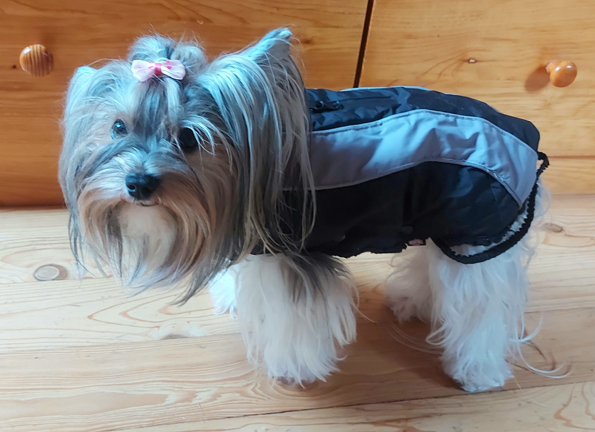 Bundu po prvním praní naimpregnujte, nechte impregnaci zaschnout a poté bundičku může pejsek nosit i v silněm dešti