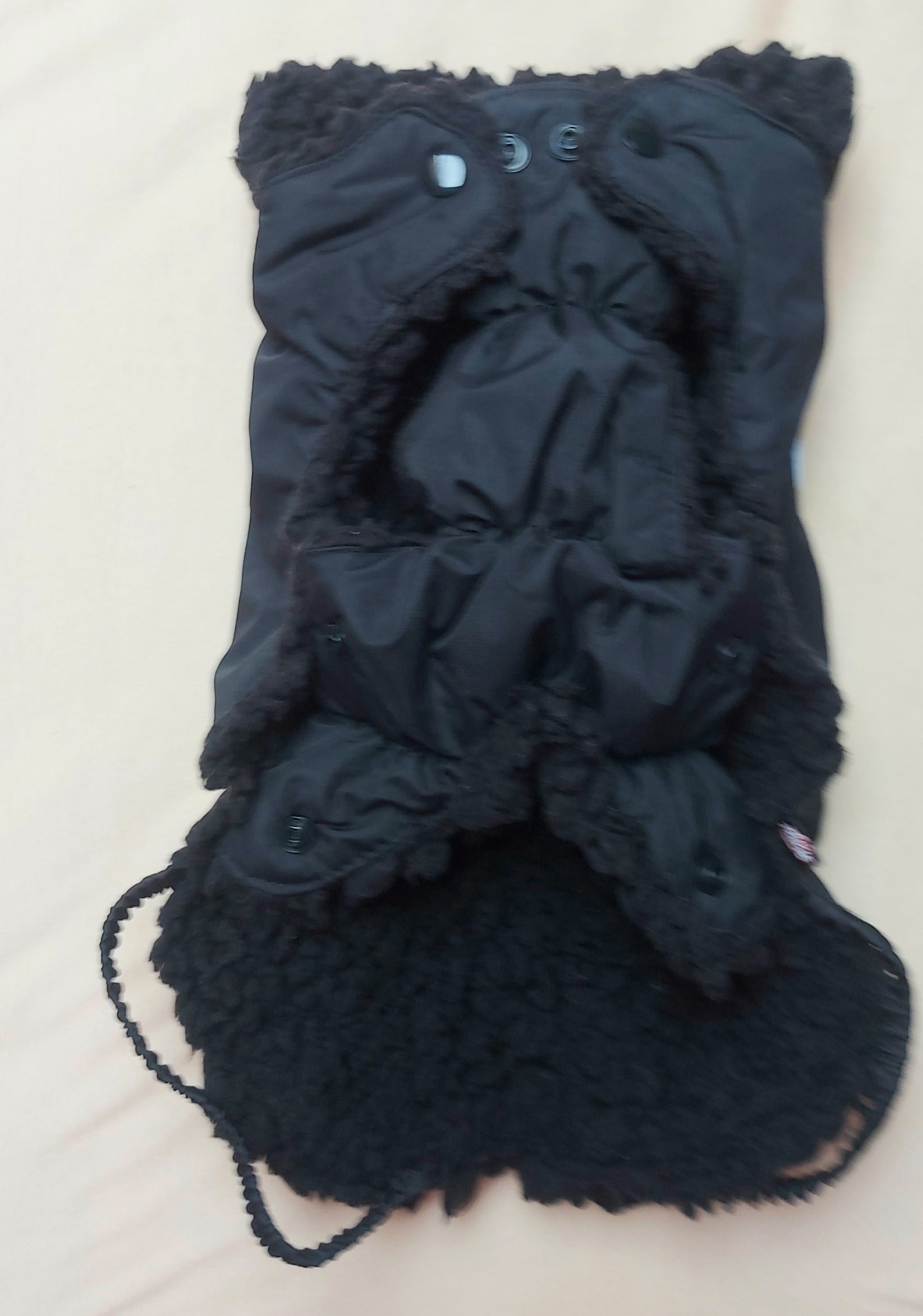 Zespodu bundy je materiál fleece kožíšek v černé barvě, který chrání bříško před chladem, vnitřní část celá zateplená včetně límce
