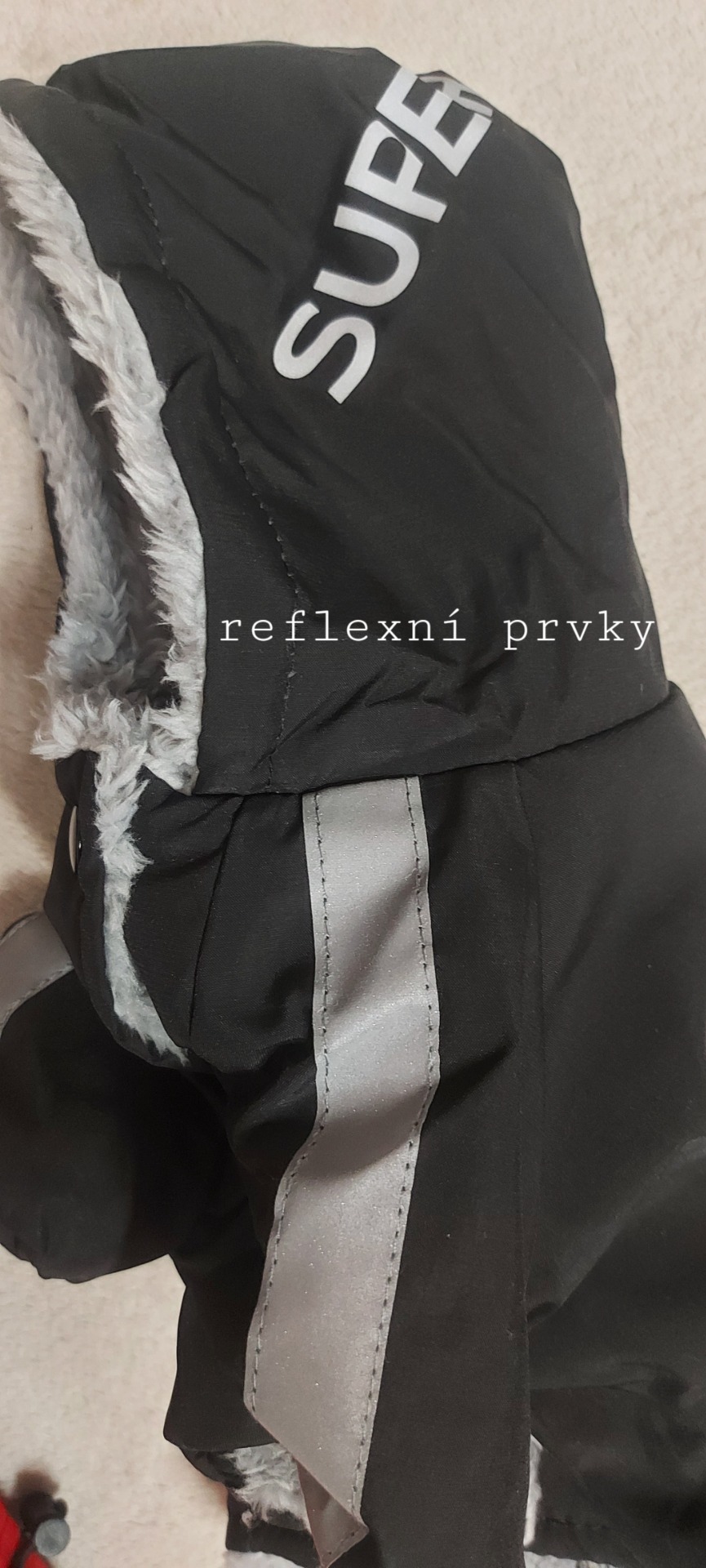 • reflexní prvky - nápisy, reflexní pruhy - pejsek bude viditelný ze všech stran