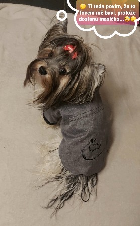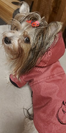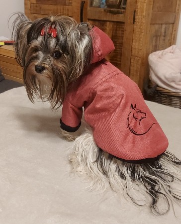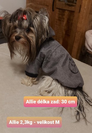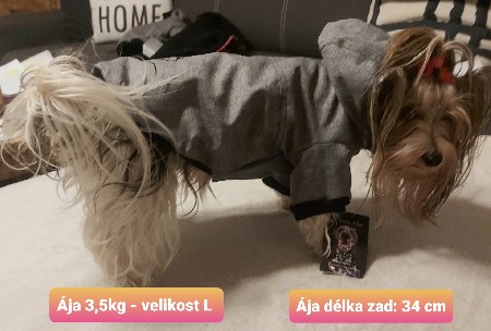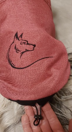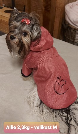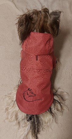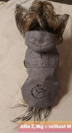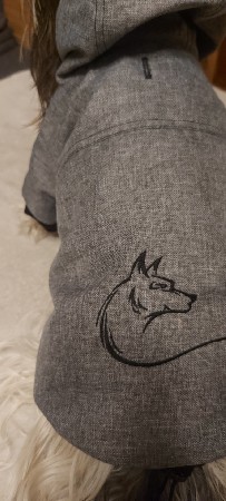 Na bundě je efektní výšivka, vzadu lze bundu stáhnout upínacím mechanismem, dobře drží na těle, neodstává, kryje všechny partie psa