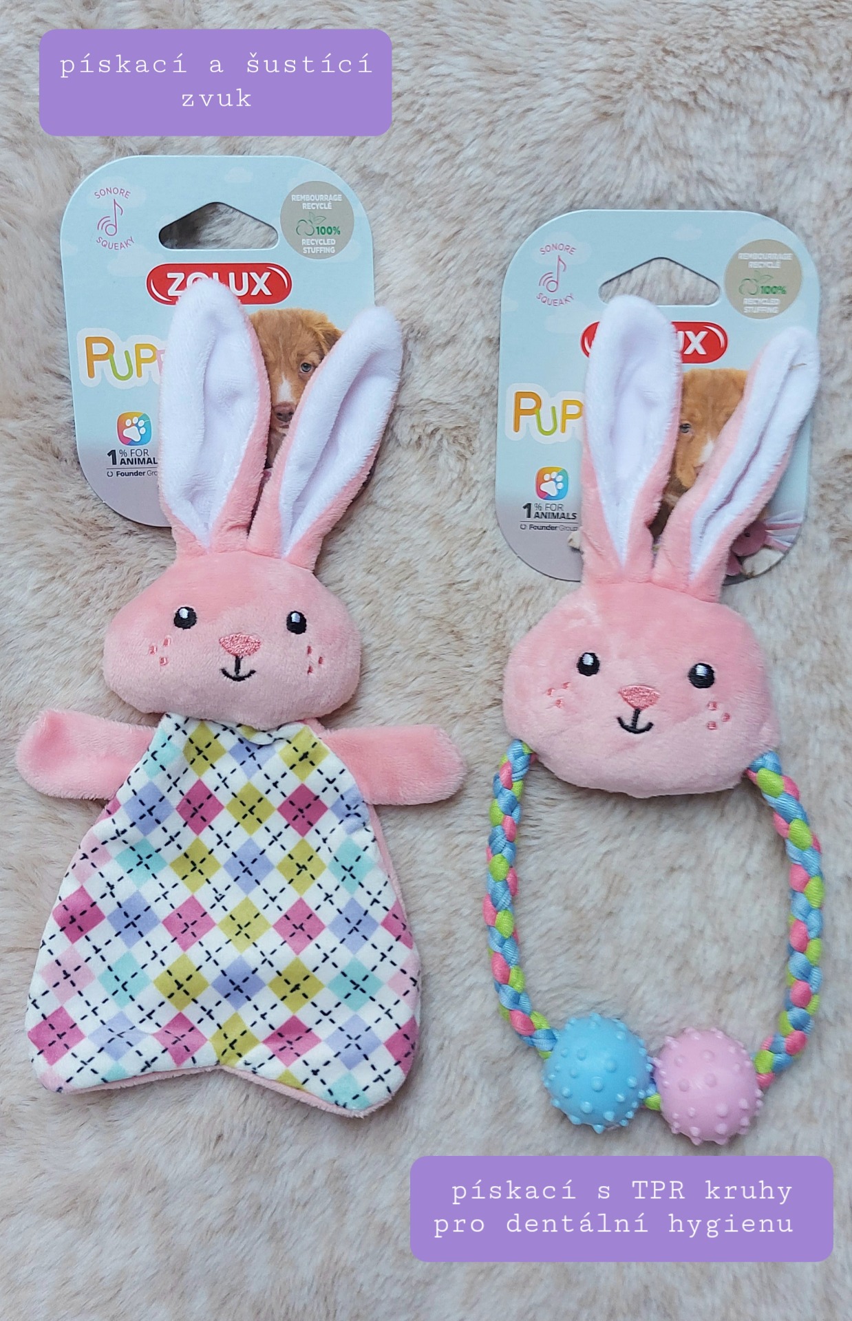 Hračka Puppy zajíček má jemné pískátko, působící na psí smysly.