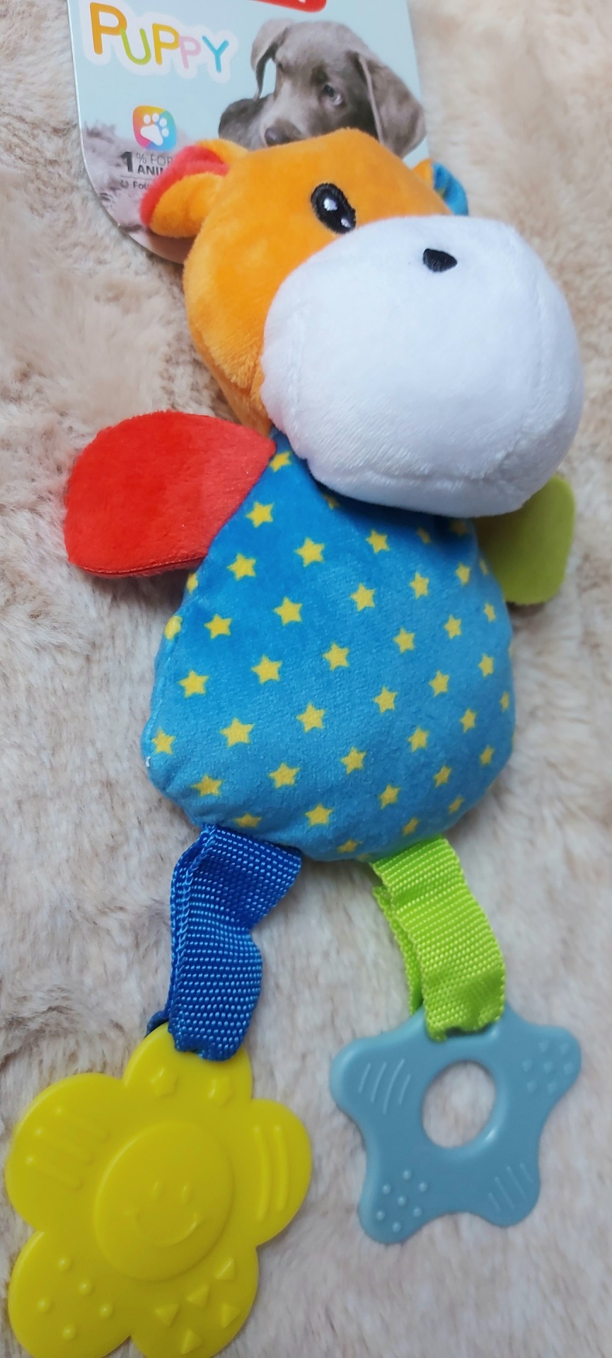 Hračka je vhodná pro přetahování, kousání, intenzivní žvýkání a mazlení do pelíšku