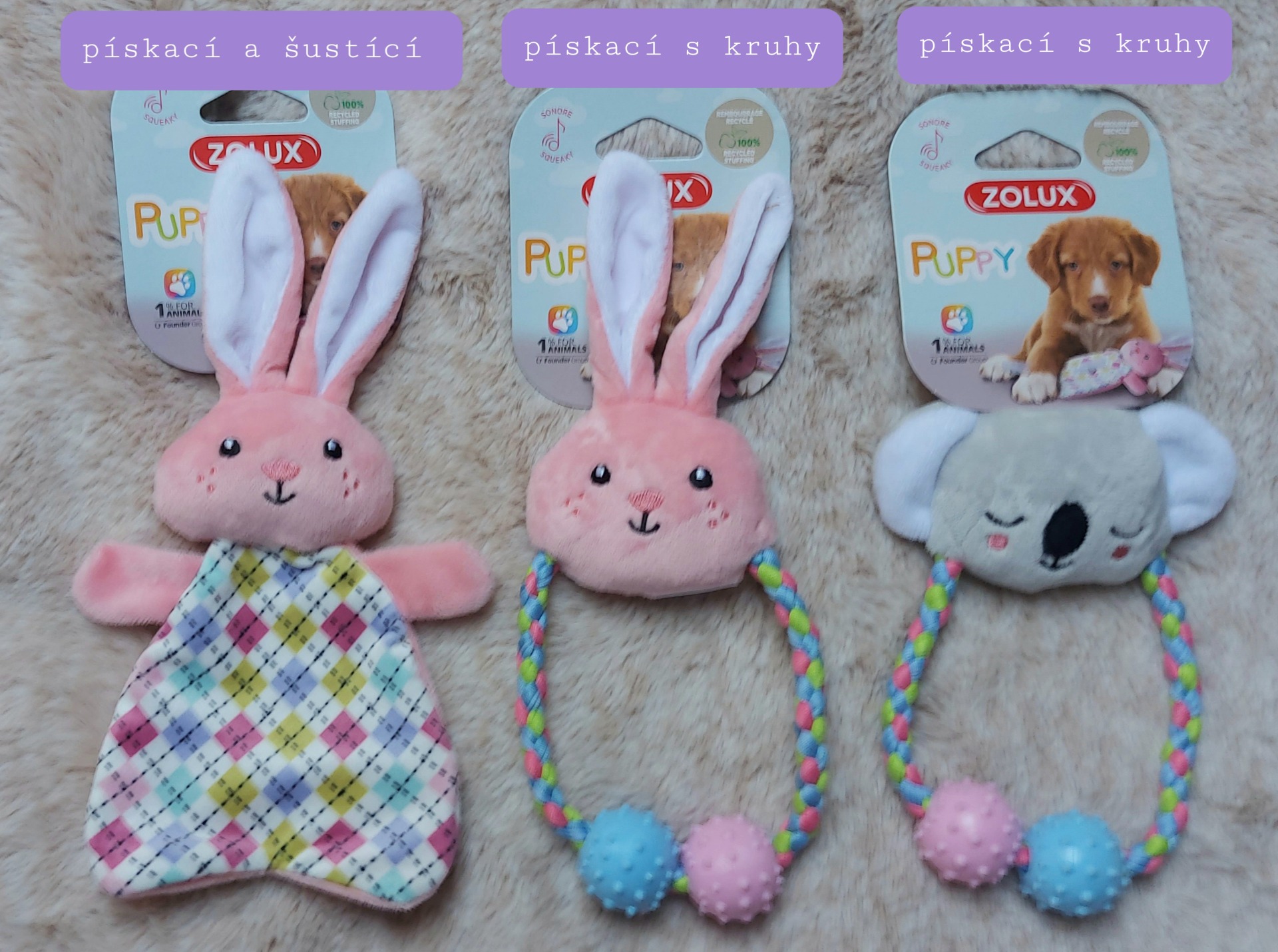 Měkoučké a šetrné k mléčným a malým zoubkům - to jsme měli na paměti při vybírání vhodných hraček pro štěňátka a malé pejsky
