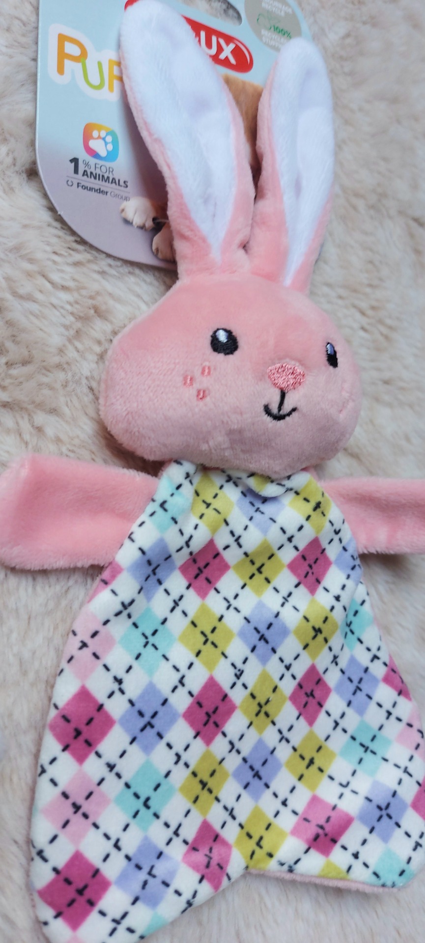 Hračka Zolux Puppy zajíček má jemné pískátko a šustící zvuk, působící na psí smysly