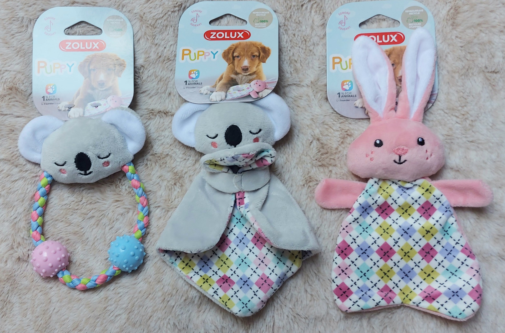 Nová kolekce ekologických plyšových hraček pro psy z měkké plyšové látky a výplně ze 100% recyklovaného polyesteru
