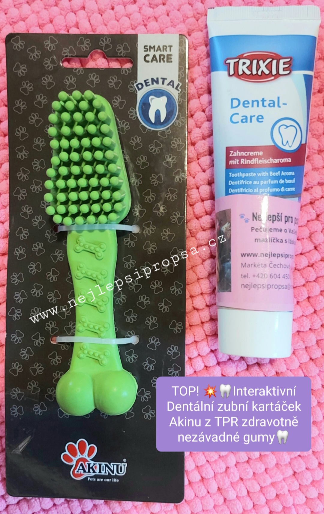 Doporučuji také při cestování se psem - pejsek použije dentální kartáček jako hračku a zároveň pro zubní hygienu
