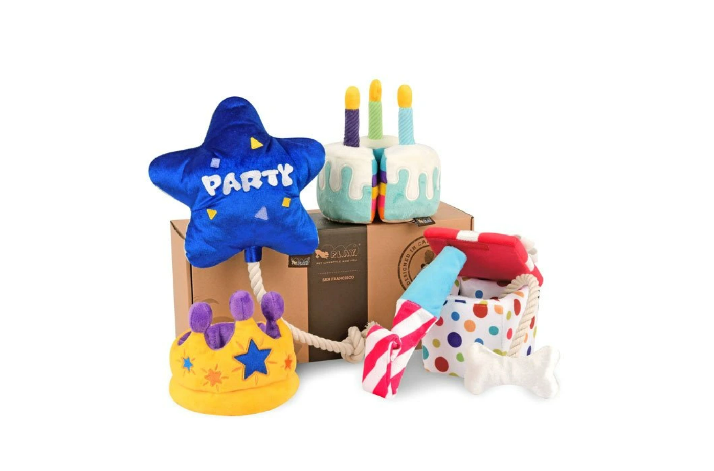 P.L.A.Y. Dárkový set Pískací a šustící Hračky pro psa Party Time Balení 5 ks 2 zvuky! Pískací a šustící 1 399,00 Kč 0,00 Kč